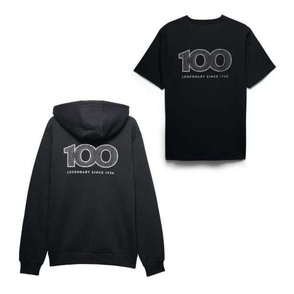 Le hoodie zippé 100 % coton biologique offre une coupe classique, confortable et polyvalente, avec un logo STIHL discret sur la poitrine et le logo anniversaire noir réfléchissant dans le dos. Le t-shirt assorti, dans le même esprit et la même qualité, propose une coupe intemporelle et le visuel emblématique du centenaire, pour un look complet et symbolique du centenaire.