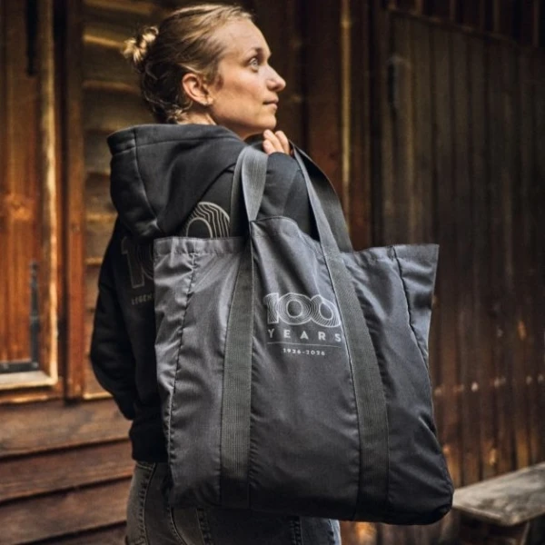 Le sac noir STIHL 100 ANS allie praticité et style, avec des anses côtelées et un imprimé 3D réfléchissant «100 LEGENDARY SINCE 1926». Ses dimensions généreuses en font un accessoire idéal pour transporter équipements et affaires, et il complète parfaitement le reste de la collection anniversaire.
