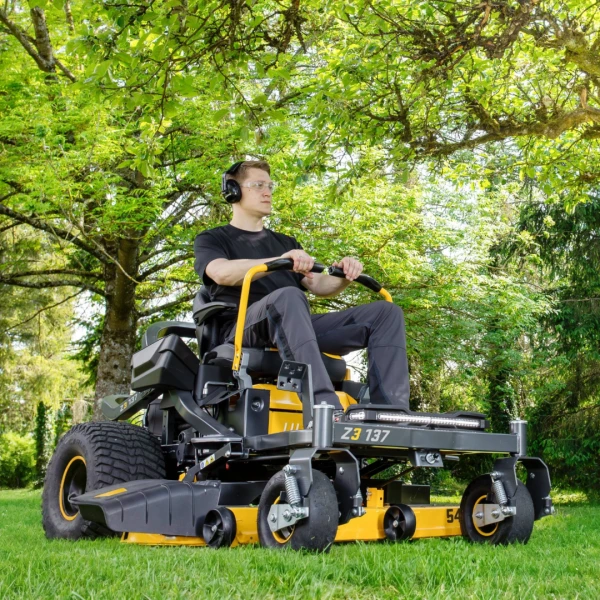La sécurité et la visibilité sont portées à leur maximum grâce à l'intégration d'une nouvelle barre de phares à LEDs, présente à partir du Z2 127, elle est trois fois plus lumineuse que les systèmes précédents. Une caractéristique idéale pour repérer les obstacles par temps nuageux ou prolonger les sessions de tonte. Pour une stabilité accrue, CUB CADET introduit de nouveaux pneus à sculptures asymétriques qui permettent une meilleure traction et une répartition uniforme de la charge, minimisant ainsi les dommages sur la pelouse. Cette conception optimisée prolonge non seulement la durée de vie des pneumatiques, mais assure également une sérénité totale pour l'entretien de tous les types de terrains, même les plus exigeants.