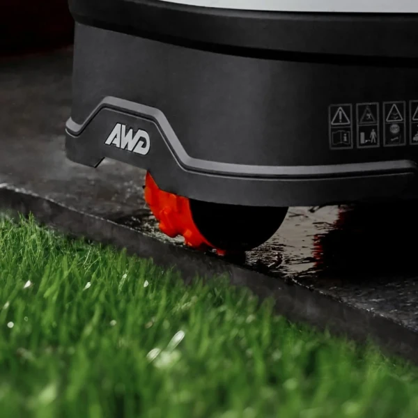 La transmission AWD constitue la nouveauté phare de cette génération et permet au i2 AWD d'être paré pour tous les terrains. Contrairement aux modèles classiques souvent limités par leur adhérence, ce robot dispose d'une transmission intégrale à trois roues motrices qui lui évite de patiner sur l'herbe humide ou de s'embourber dans les zones meubles. Cette puissance est complétée par une agilité remarquable grâce au système Xero-Turn (également présent sur les modèles haut-de-gamme X4) : sa roue arrière directionnelle lui permet de pivoter sur place avec une précision chirurgicale, garantissant des manœuvres fluides sans jamais "scalper" ou abîmer le gazon.