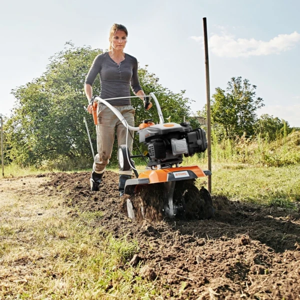 Pour les jardins de taille intermédiaire où la précision est aussi importante que la puissance, la motobineuse STIHL MH 560 s'impose comme une référence de maniabilité. Dotée d'une largeur de travail de 60 cm, elle est spécifiquement équilibrée pour naviguer avec agilité dans des espaces plus restreints sans sacrifier la profondeur de binage. Sa conception technique repose sur un moteur robuste couplé à des éléments anti-vibrations intégrés entre le carter et le guidon, offrant une souplesse de pilotage remarquable même lors de l'attaque de sols durcis. Ses fraises au design hélicoïdal pénètrent la terre de manière séquentielle, réduisant ainsi les à-coups et garantissant un brassage homogène des couches arables.