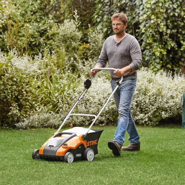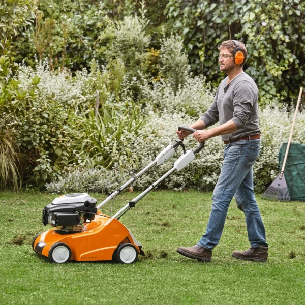 Pour les propriétaires de grands terrains allant jusqu'à 2 000 m² le scarificateur thermique STIHL RL 540 prend le relais avec une puissance et une endurance redoutables. Affranchi de toute contrainte de fil ou d'autonomie de batterie, ce modèle robuste est propulsé par un moteur thermique performant qui lui permet d'affronter les pelouses les plus denses et les plus vastes sans jamais faiblir. Il est équipé d'une unité de scarification dotée de 7 doubles lames fixes, offrant ainsi 14 tranchants acérés qui entaillent le sol avec une précision chirurgicale pour en extraire le feutre et la mousse en profondeur. Sa largeur de travail généreuse de 38 centimètres, couplée à un réglage de la profondeur de coupe directement accessible sur le guidon, permet de couvrir de grandes surfaces rapidement tout en gardant un contrôle total sur l'intensité du soin apporté au gazon.