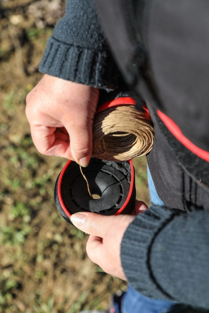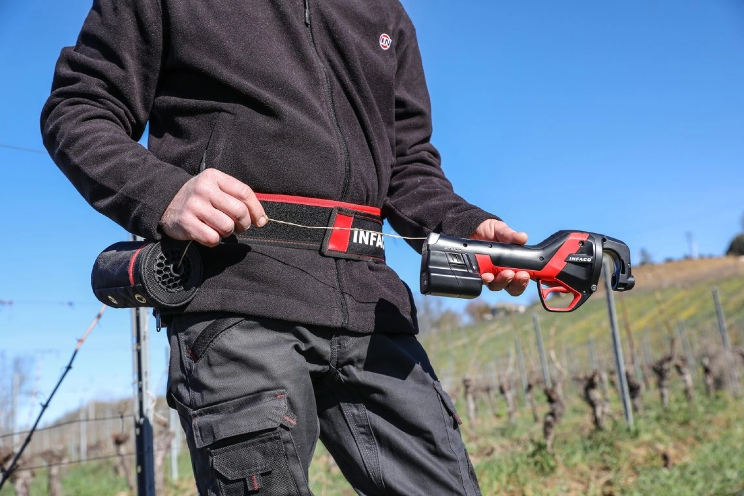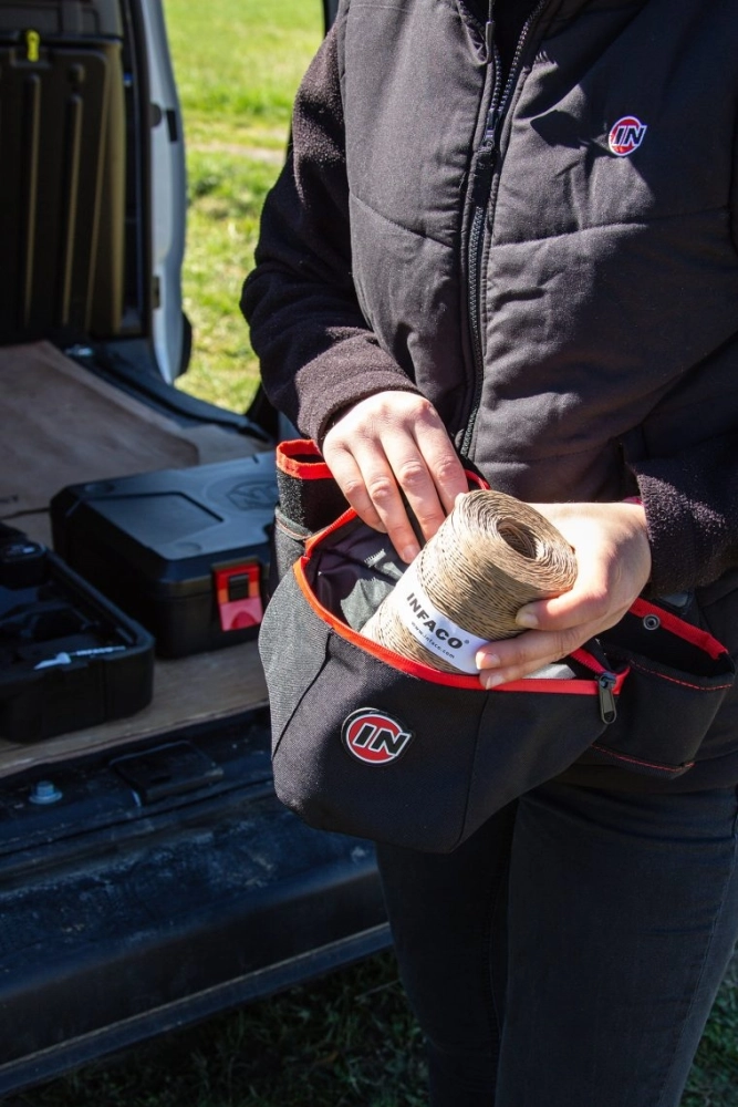 Une bobine INFACO a une capacité d'au moins 3 000 liens, grâce à ses 400 mètres de fil. Pourtant son encombrement est mini ! Elle se place dans le dévidoir, sur la ceinture de portage. La sacoche, sur la ceinture également, permet d'emporter une seconde bobine avec soi.