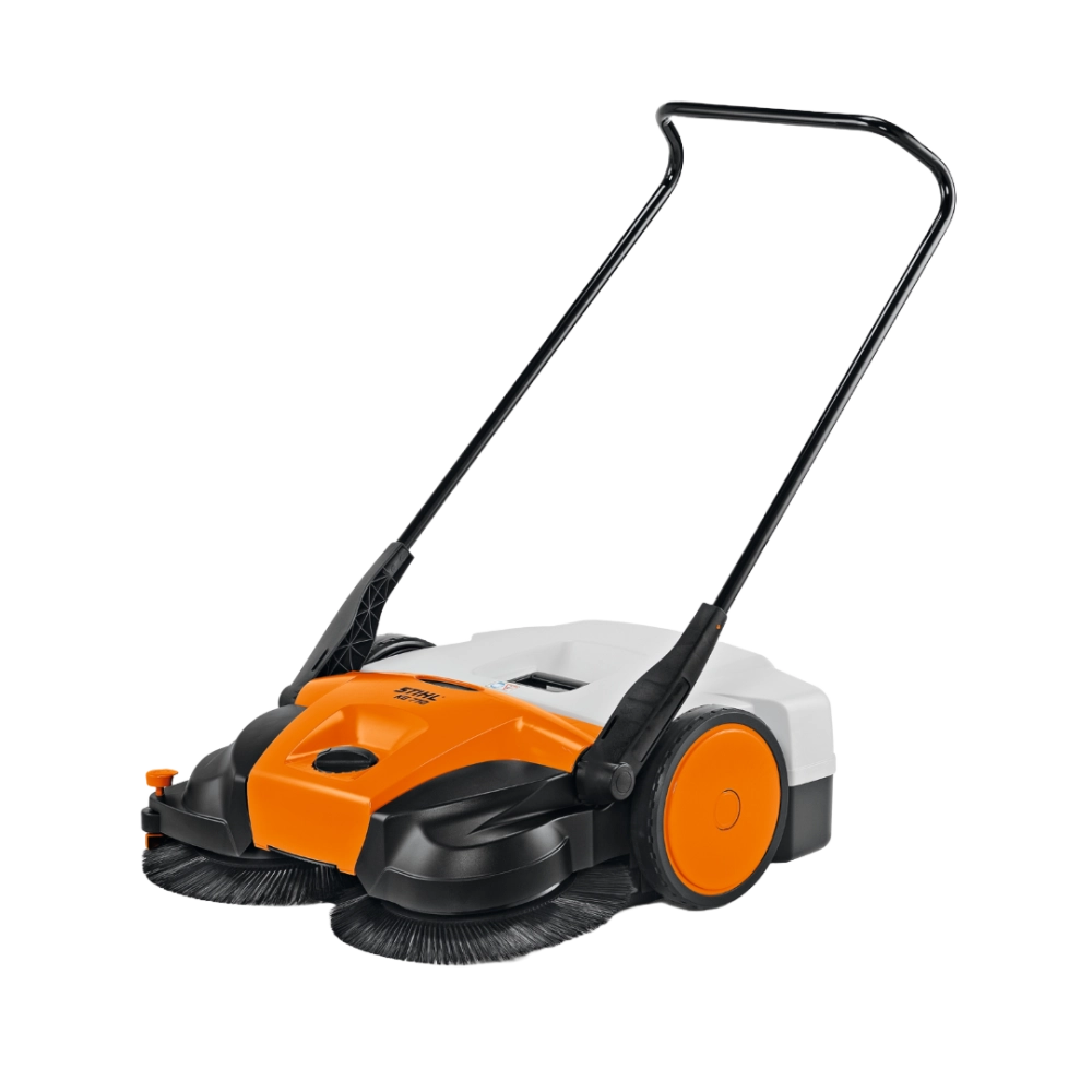 Grâce au réglage central de la hauteur en 8 positions , vous pouvez rapidement adapter la balayeuse à main KG 770 à n'importe quelle surface et régler la hauteur des poils. Les poils robustes du balai à disque en nylon résistant à l'usure sont très durables. Vous pouvez facilement retirer la poignée de poussée de la balayeuse STIHL KG 770 et ranger la balayeuse en position verticale.