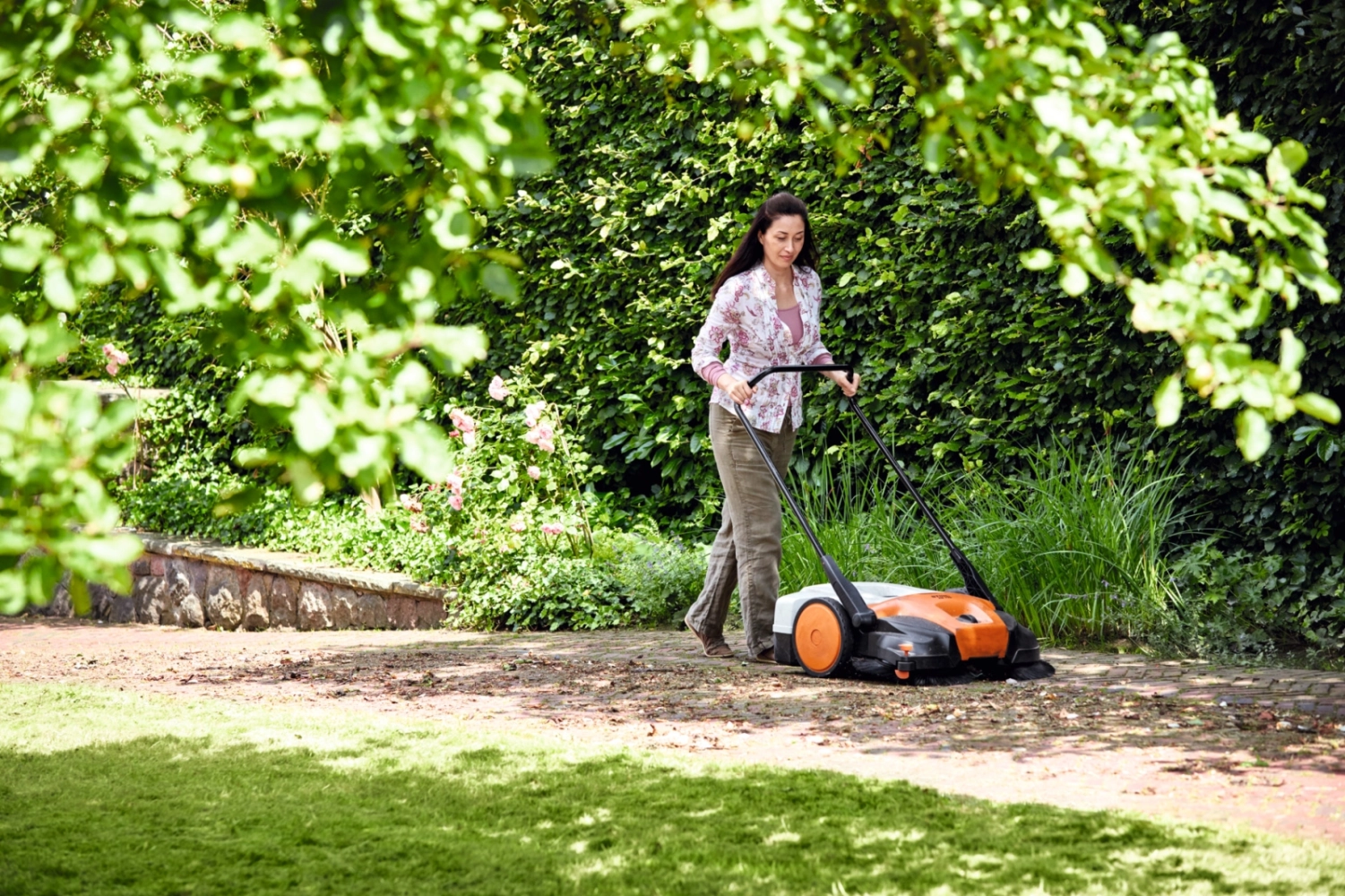 Avec la balayeuse STIHL KG 770, les professionnels et les utilisateurs privés peuvent nettoyer efficacement de plus grandes surfaces intérieures et extérieures telles que les sols des halls avec une chape étanche ou des zones en pavés uni ou pavés. Le système de balayage STIHL MultiClean PLUS aide à ramasser différents types de saleté sur une largeur de balayage de 77 cm. La brosse supplémentaire du STIHL KGA 770 ramasse même la poussière la plus fine. La bande d'étanchéité périphérique, associée à un filtre à air, retient efficacement la poussière projetée. Grâce aux brosses à disque saillantes, vous pouvez également l'utiliser pour balayer de manière fiable le long des murs ou des bordures. Grace au dispositif de maintien des poils, les performances de balayage sont en outre améliorées.