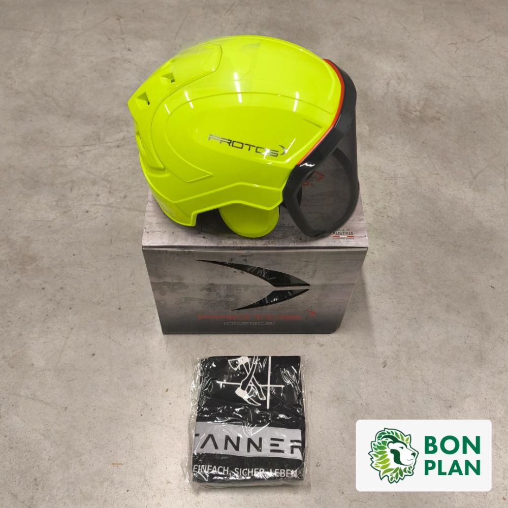 Ce casque a été spécialement développé pour le secteur d'élagage et travail en hauteur. Équipé d'une protection auditive intégrée (SNR 27), d'une visière métal Protos F39 et d’une jugulaire Myclip Protos spécialement conçu pour ne pas glisser sous la protection auditive, même en position inclinée ou en cas de travaux au-dessus de la tête.