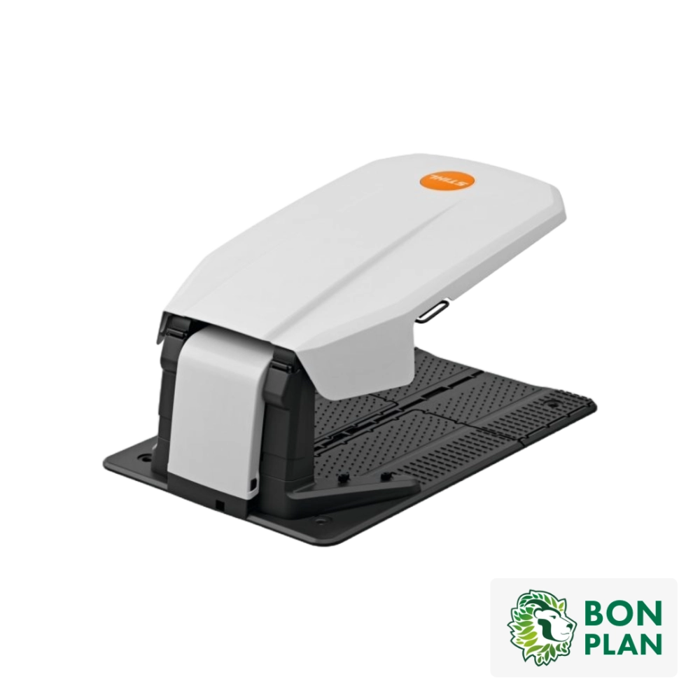 Que votre robot de tonte STIHL iMOW® soit garé pour se recharger ou en attente de sa prochaine utilisation, le toit ouvrant STIHL iMOW® le protège des rayons du soleil, des autres conditions météorologiques et des débris. Ce pare-soleil résistant aux intempéries en option est très facile à installer sur la station d'accueil de votre tondeuse robot STIHL iMOW®. Il est également équipé d'un mécanisme de pliage intégré pour un nettoyage facile à tout moment.