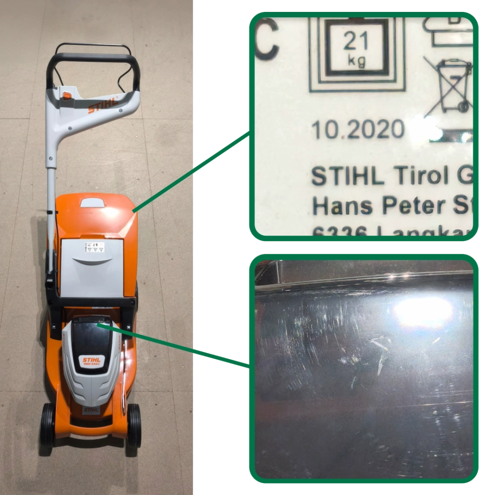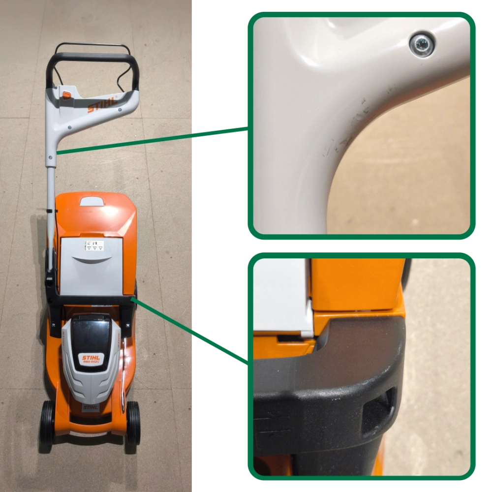 La tondeuse sans fil STIHL RMA 443 C dispose d’un moteur puissant avec une largeur de coupe de 41 cm et un guidon EasyBac réglable sans outils, intégrant un mode ECO pour optimiser l’autonomie des batteries STIHL AP et une lame à flux optimisé pour réduire la consommation d’énergie. Elle offre un réglage centralisé de la hauteur de coupe de 25 à 75 mm, un bac de ramassage de 55 L, tout en restant silencieuse, maniable et sans émission. Pratique, elle est compatible avec le kit mulching AMK 443 et équipée de tendeurs Quick-Fix pour un transport et un rangement faciles. . Compatible avec les batteries AP.