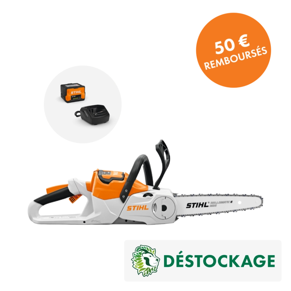 OFFRE DE REMBOURSEMENT STIHL : 50€ remboursés par STIHL pour l’achat de ce pack machine AK (machine, batterie et chargeur). Offre valable du 1er septembre 2025 au 30 novembre 2025 dans la limite des participations restantes. Conditions complètes disponibles sur stihl-promo.fr