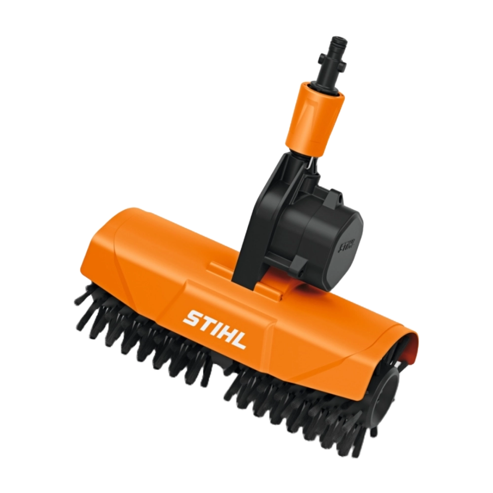 Les deux brosses, disponibles en pièces de rechange pour le rouleau-brosse rotatif STIHL, sont particulièrement adaptées au nettoyage des terrasses avec revêtement en bois ou en pierre, ainsi que des façades et des portes de garage. Leur structure est identique à celle des brosses fournies en standard avec le rouleau-brosse rotatif STIHL. Grâce au système de dégagement rapide, vous pouvez changer les brosses en un instant et sans outils.