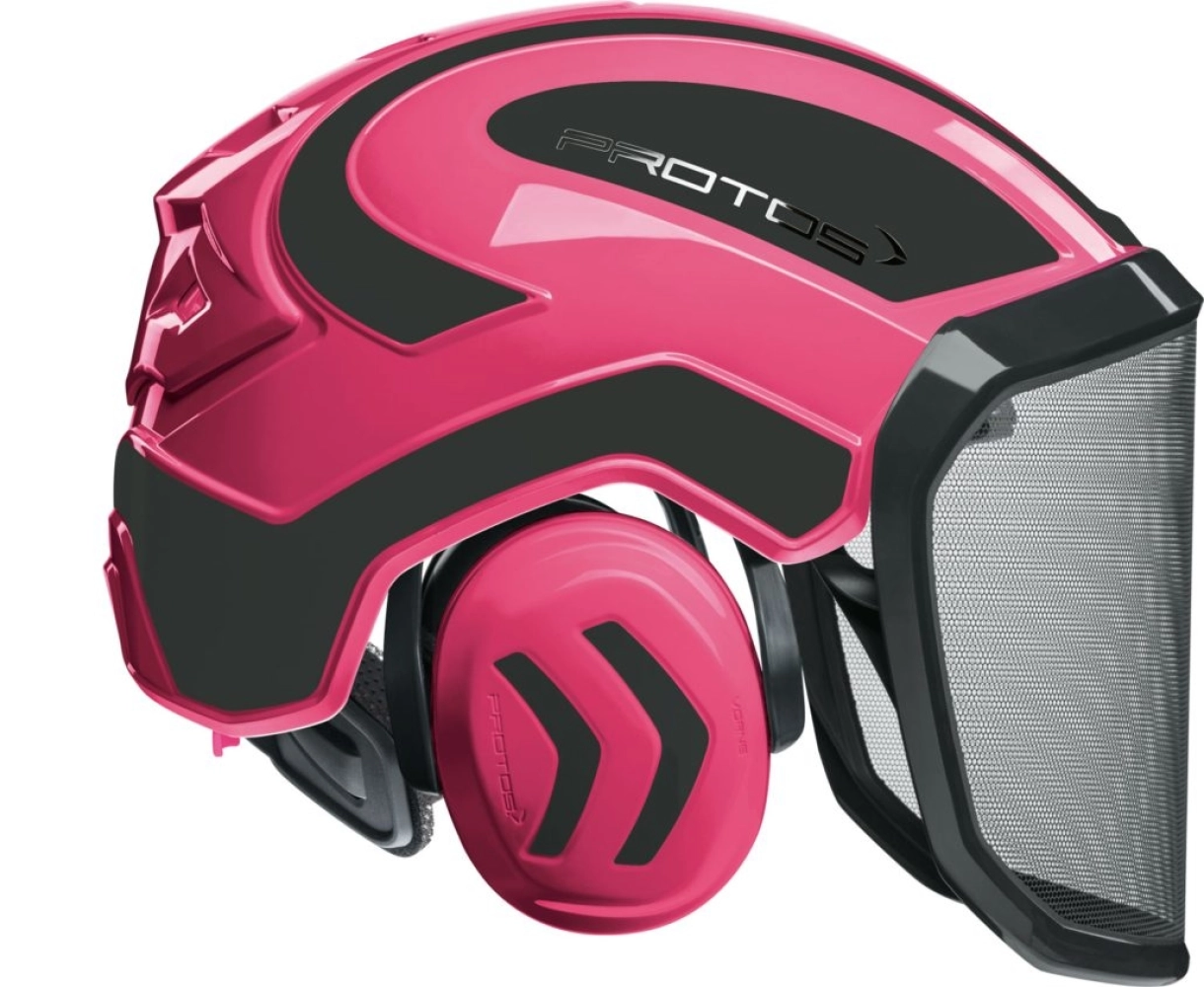 Ce casque est de taille unique (54-62) et de couleur rose et noir mat. Attention, il est nécessaire de remplacer le casque après un choc, de plus, la durée de vie d'un casque est de 5 ans. Ce modèle n'est pas équipé de mentonnière et ne convient pas pour les travaux en hauteur. Pour les travaux en hauteur seuls les casques Protos® Integral version CLIMBER ou Protos® Integral version ARBORIST sont équipés d'une jugulaire et d'un crashabsorber.