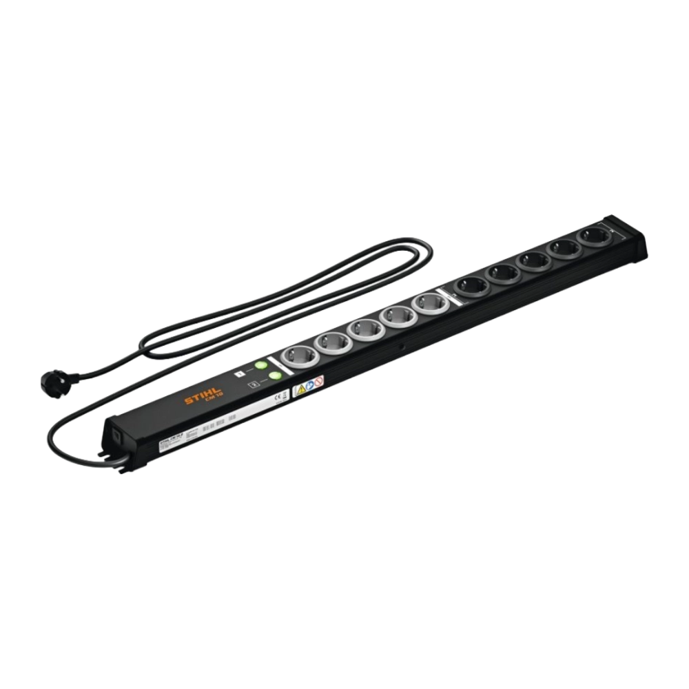 Remarque : Le contrôleur de charge STIHL CM 10 ne peut être utilisé qu'en intérieur (par exemple dans un atelier) et doit être fixé de manière sécurisée (mur, rack, placard, etc.). Pour garantir un fonctionnement optimal, ne connectez pas et n'utilisez pas d'autres appareils simultanément sur la même prise (230 V, 16 A, monophasé).