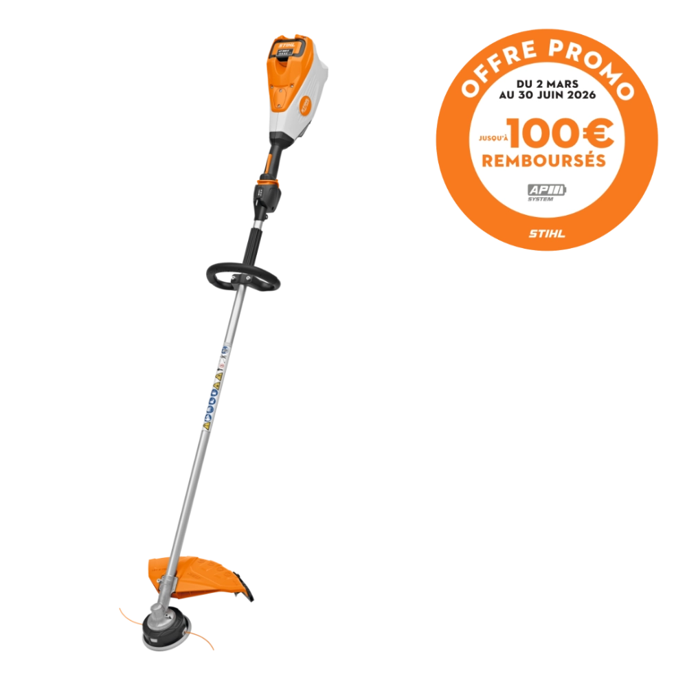 OFFRE DE REMBOURSEMENT STIHL : 50€ remboursés par STIHL pour l’achat de cette machine AP nue. 100€ remboursés par STIHL pour l’achat de cette machine en pack (avec une batterie AP et un chargeur compatible). Offre valable du 2 mars 2026 au 30 juin 2026 dans la limite de participations restantes. Conditions complètes disponibles sur stihl-promo.fr/modalites/ap