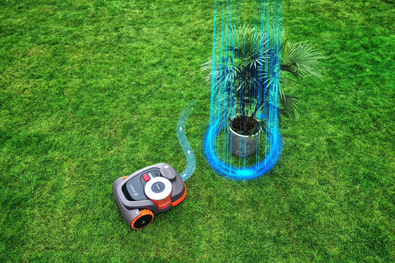 Grâce au capteur VisionFence, Navimow peut reconnaître et éviter activement des objets jusqu'à 1,5 m devant et plus de 0,1 m de diamètre. En conséquence, certains obstacles tels que les arbres et les pots de fleurs peuvent être évités sans être définis comme des îlots hors de portée.