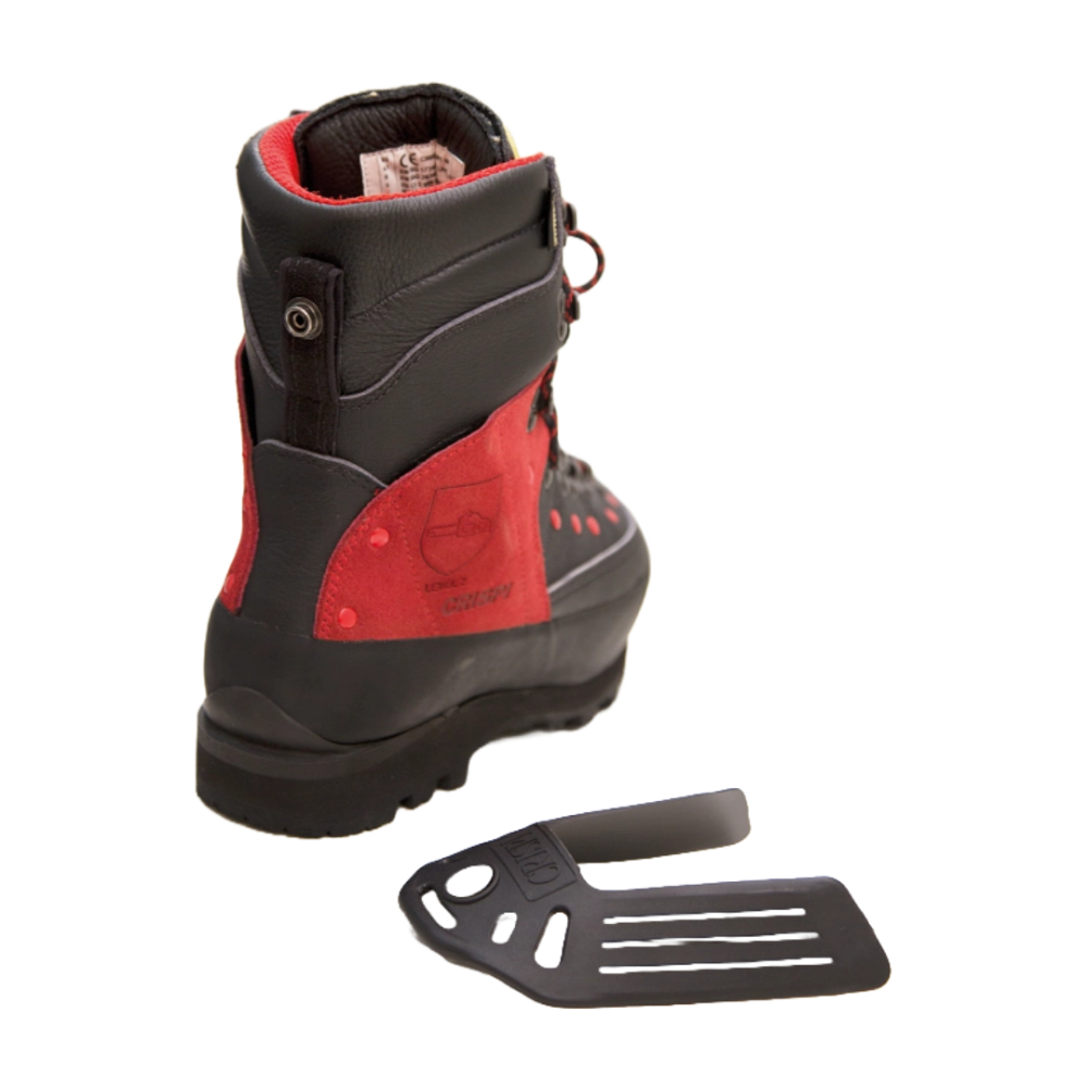 La chaussure à protection anti-coupures PFANNER Matterhorn se trouve le système unique Vario Support System (VSS) intégré dans la zone du talon, offrant une stabilité inégalée. Ce système offre une amélioration de l'équilibre tout en préservant les ligaments, ce qui diminue le risque d'entorses, notamment lors de la navigation sur des terrains abrupts. Le dispositif de protection VSS apporte une couche supplémentaire de protection, garantissant votre sécurité lors des descentes exigeantes. Afin de rendre l'insert VSS amovible plus polyvalent, il est parfait pour les surfaces planes et lors de l'utilisation de machines ou de véhicules, offrant ainsi une adaptabilité à différents scénarios de travail.