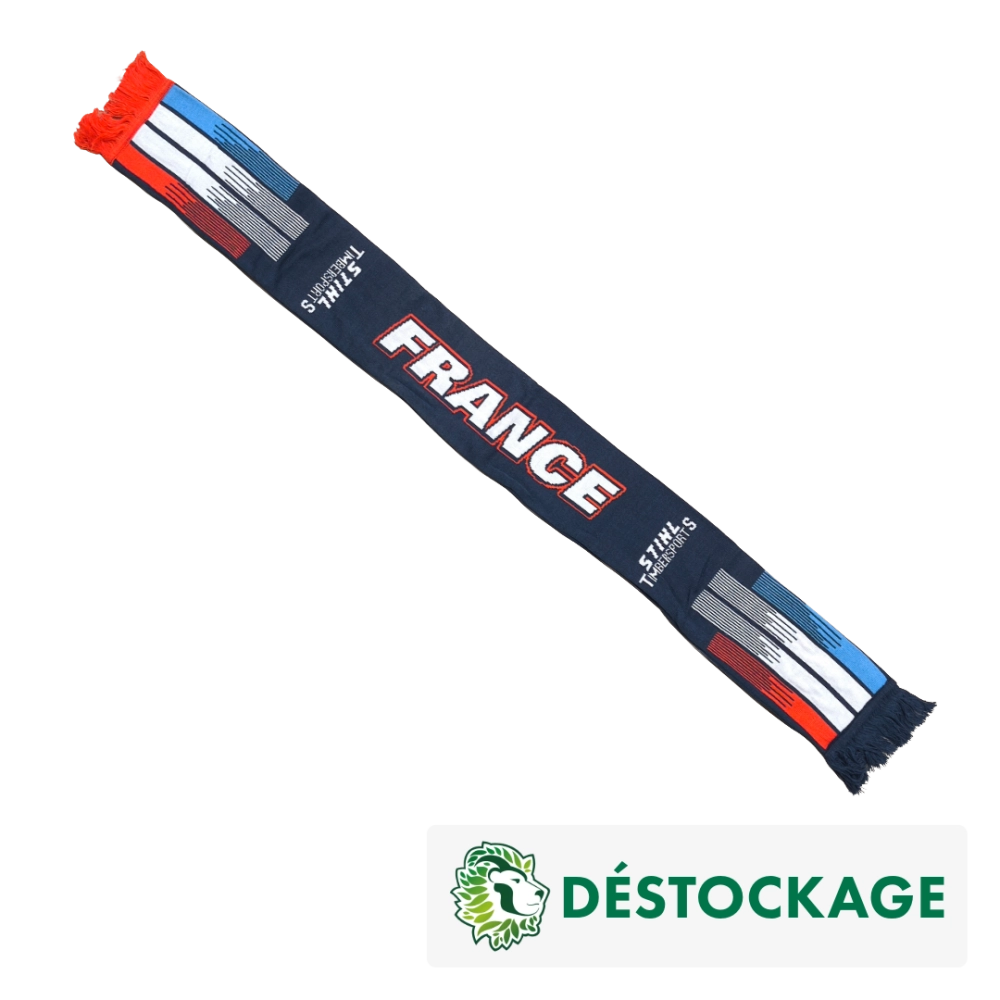 Montrez votre soutien à l’équipe de France avec cette écharpe de fan STIHL TIMBERSPORTS 2021 aux couleurs emblématiques bleu, blanc, rouge. Conçue pour les passionnés de la compétition, elle arbore un design tricolore dynamique qui met en valeur l’identité nationale et l’esprit TIMBERSPORTS. Douce et confortable, cette écharpe se porte facilement lors des événements et des compétitions pour afficher fièrement votre attachement à l’équipe de France. Elle sera aussi une décoration idéale pour se remémorer les meileurs souvenirs de l'équipe de France.