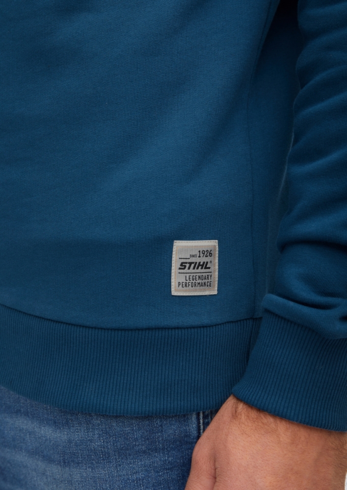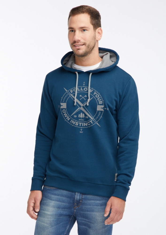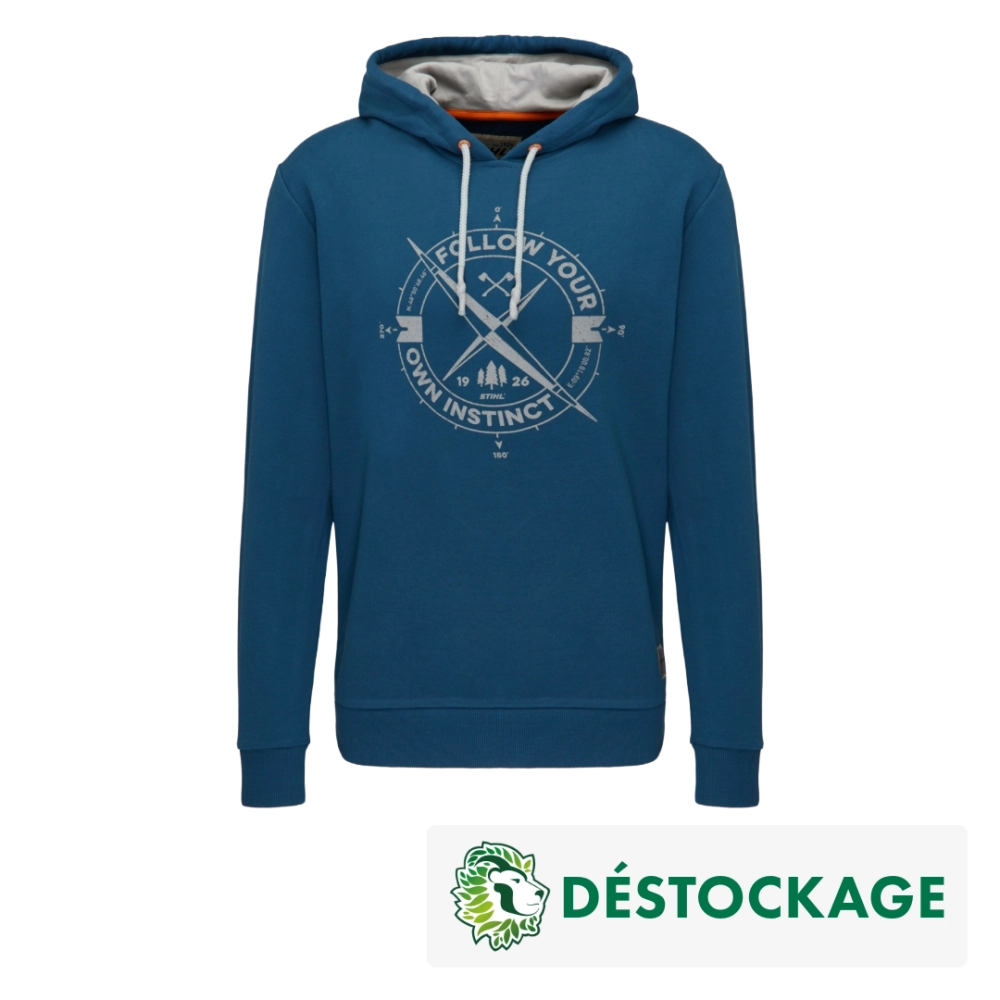Le sweat à capuche STIHL bleu pétrole avec le logo "INSTINCT" est tendance. Même en ville ou à la maison, le matériau de sueur doux en 100% coton et la capuche doublée garantissent que vous vous sentez à l'aise et vous pouvez profiter de votre temps libre en tout confort.