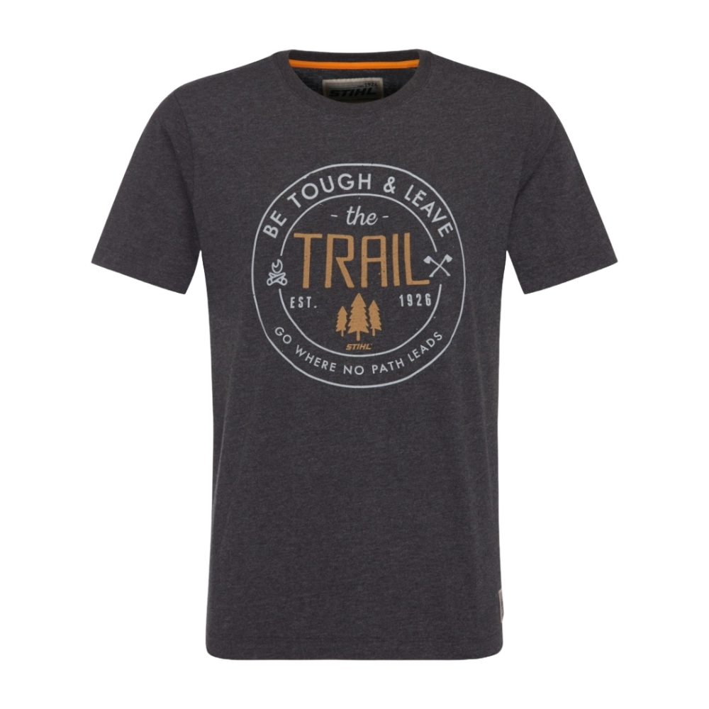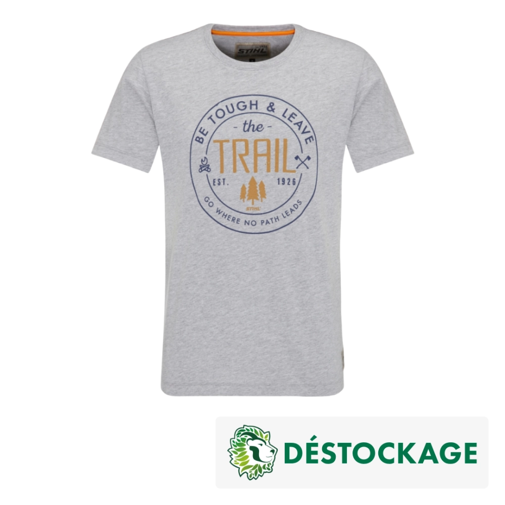 T-shirt STIHL à col rond est confortable avec mélange de coton 50% coton et 50% polyester. Avec son imprimé bicolore sur le devant et l'inscription BE TOUGH & LEAVE THE TRAIL, ce t-shirt est un incontournable pour se balader dans les chemins de forêt.