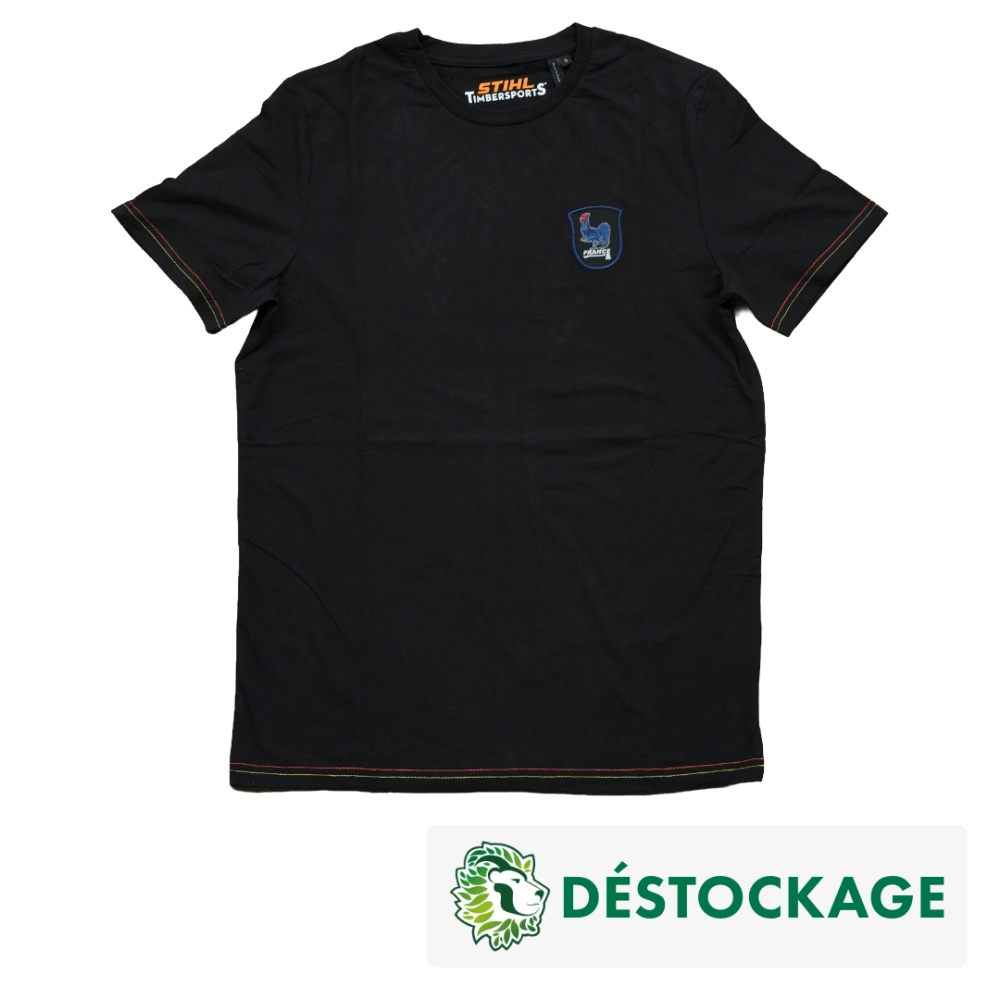 Affichez fièrement vos couleurs avec le T-shirt officiel STIHL TIMBERSPORTS® World Championship 2021 – Équipe de France ! Ce modèle noir au design exclusif met en avant le logo de l’équipe de France sur la poitrine et celui du TIMBERSPORTS® World Championship 2021 dans le dos. Les liserets de couture brodés sur le bas et les manches reprennent les emblématiques couleurs TIMBERSPORTS®, ajoutant une touche sportive et élégante. Confortable et stylé, ce T-shirt est idéal pour tous les passionnés de la discipline et les supporters de l’équipe tricolore.