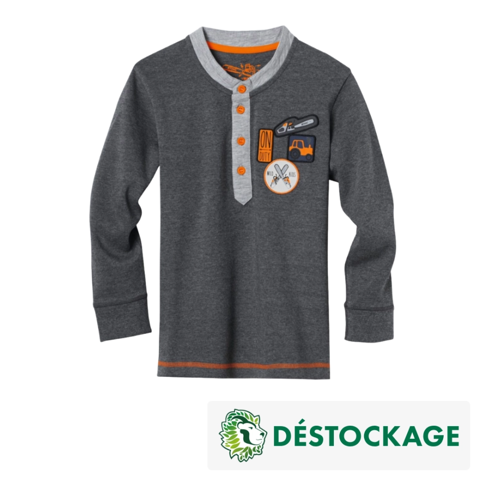 Le t-shirt à manches longues fait d'un mélange de coton doux et câlin grâce à la patte de boutonnage décontractée qui se fond dans un col montant bas. Mais surtout à cause des patchs sur la poitrine avec des motifs sympas tels que des tronçonneuses et des inscriptions Wild Kids.