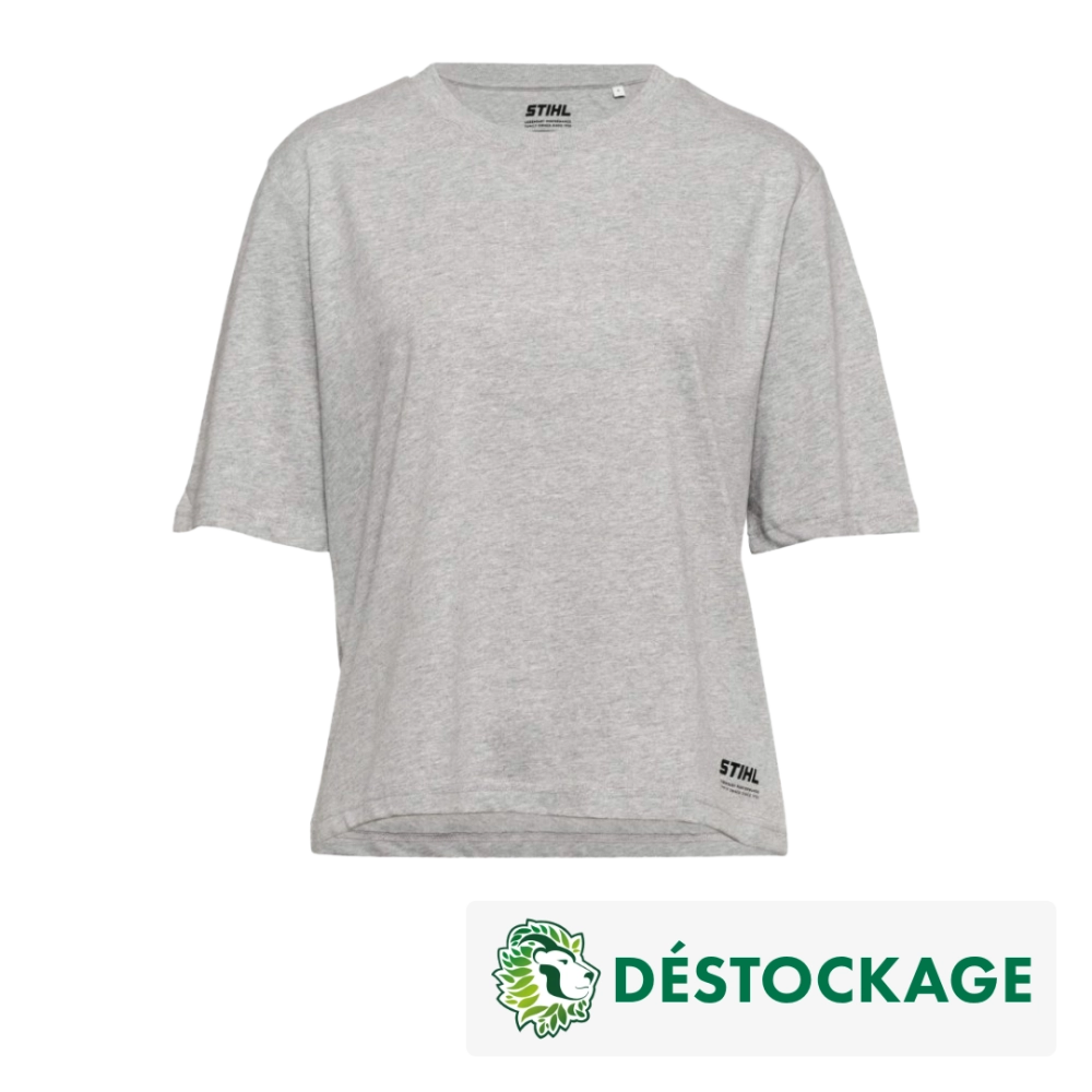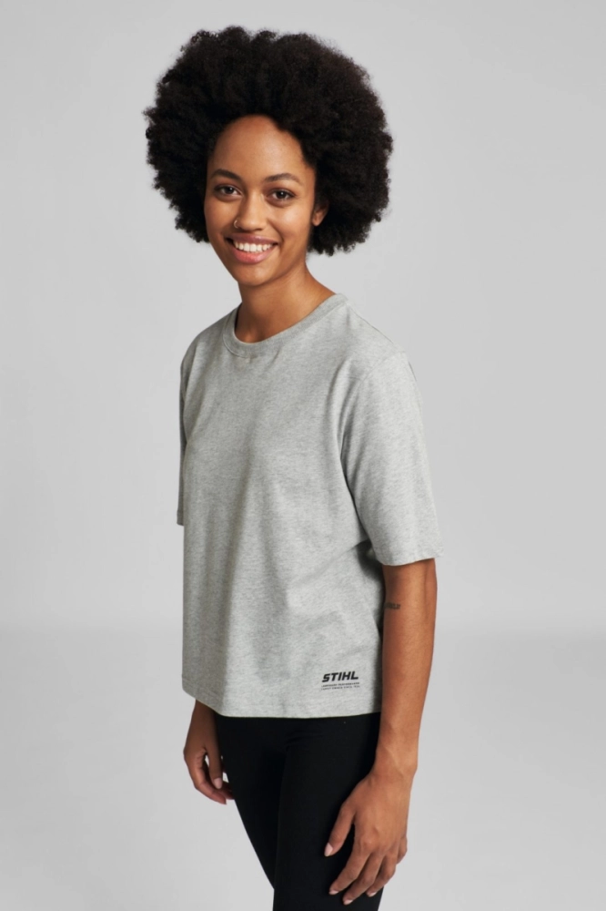Ce T-shirt gris pour femme signé STIHL séduit par sa coupe Boxy Fit ample et moderne, idéale pour un look casual et confortable. Fabriqué à partir de 70 % de coton biologique et 30 % de polyester recyclé (PES), il allie douceur, résistance et respect de l’environnement. Son col rond classique et sa forme légèrement carrée en font un vêtement facile à porter et à assortir, que ce soit avec un jean, un short ou une tenue de travail décontractée. Discret et élégant, il est orné d’un petit logo STIHL imprimé sur le bas au devant, rappelant subtilement l’identité de la marque.