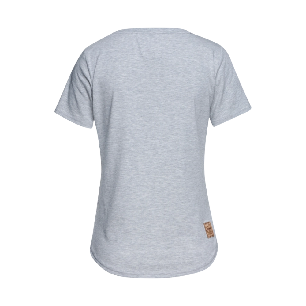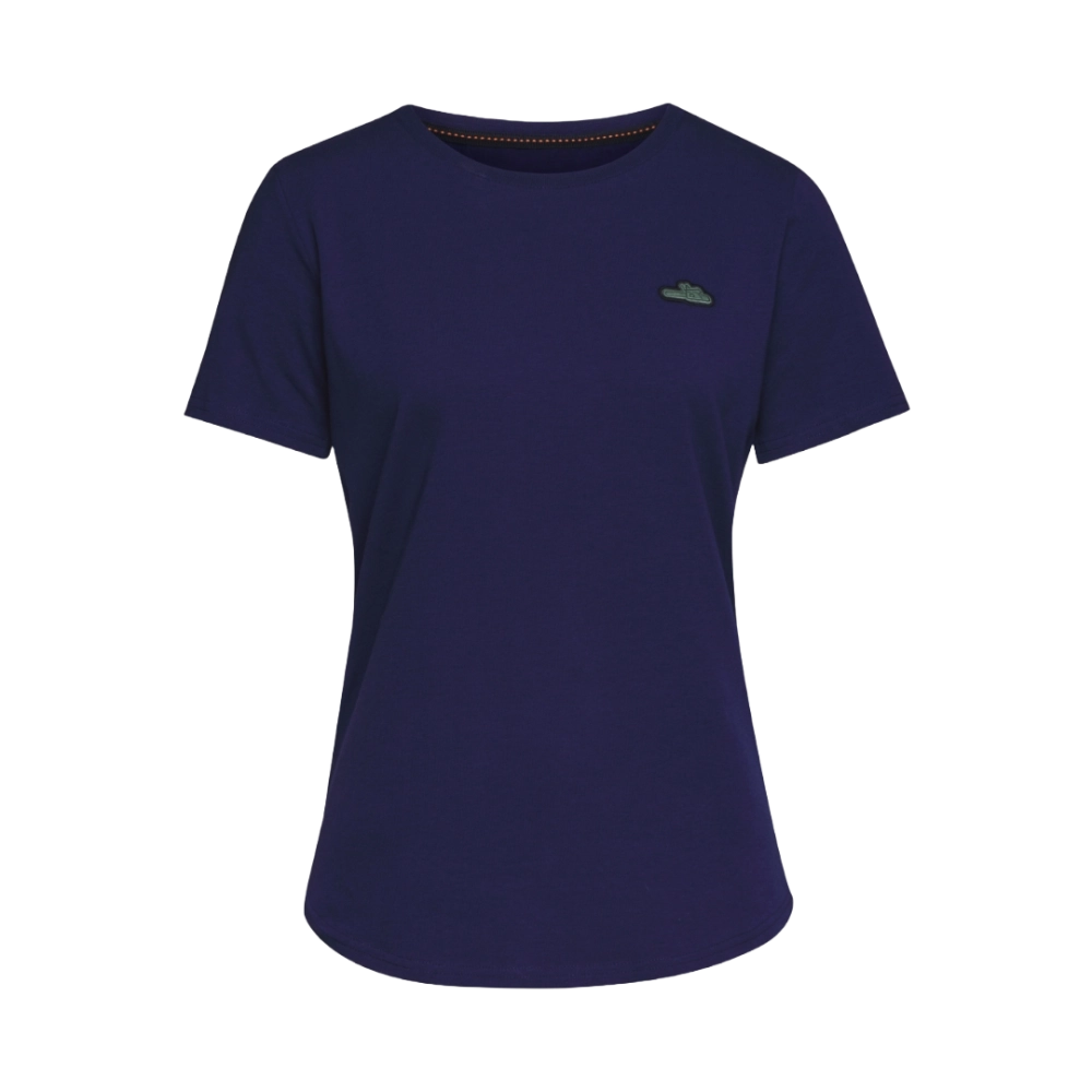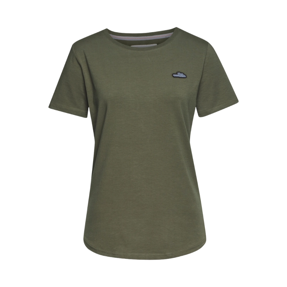 Le T-shirt à col rond confectionnée dans un confortable mélange de matières (95% coton, 5% élasthanne) avec un badge scie à chaîne couleur kaki sur la poitrine et un badge en liège au dos habille toutes les femmes.