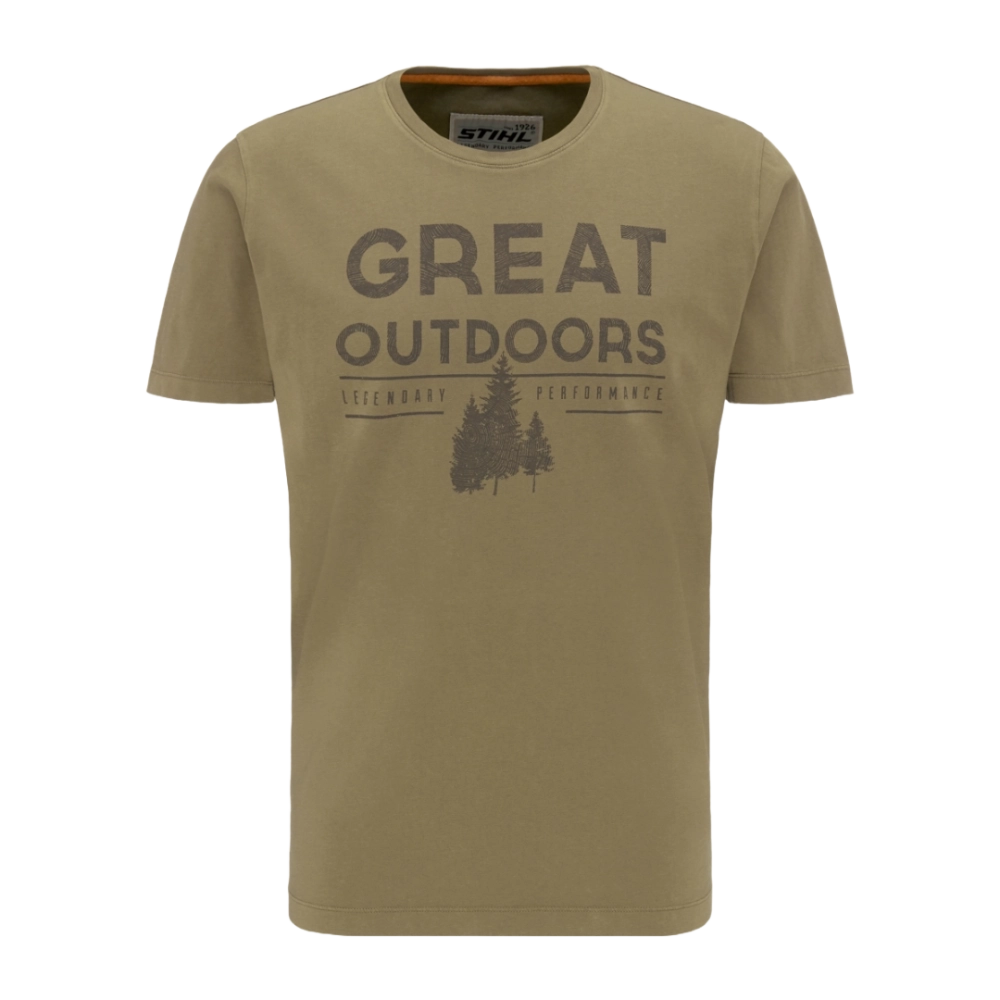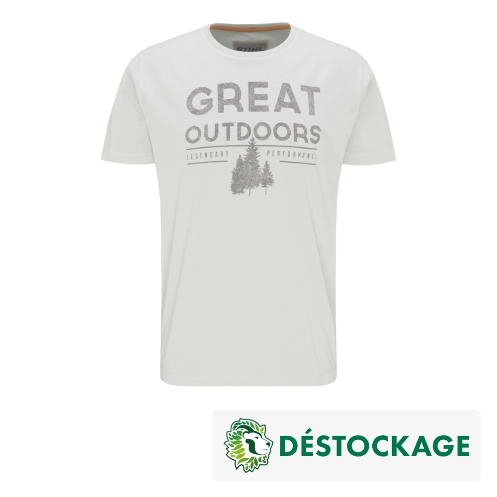 T-shirt STIHL décontracté et confortable en pur coton avec l'inscription "GREAT OUTDOORS" sur le devant.
