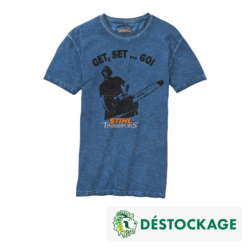 Découvrez le t-shirt STIHL TIMBERSPORTS, au style authentique et légèrement usé, idéal pour afficher votre passion pour la compétition de bûcheronnage. Confectionné en 100% coton de haute qualité, il assure confort et douceur au quotidien. Son grand imprimé distinctif sur le devant et sa plaque avec logo STIHL TIMBERSPORTS sur le bord inférieur apportent une touche unique à ce modèle en gris-bleu, parfait pour un look décontracté et sportif.