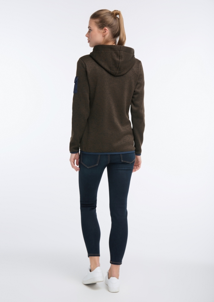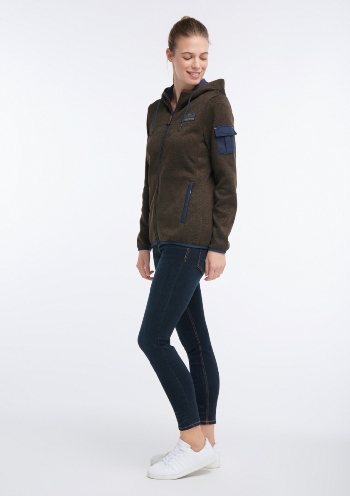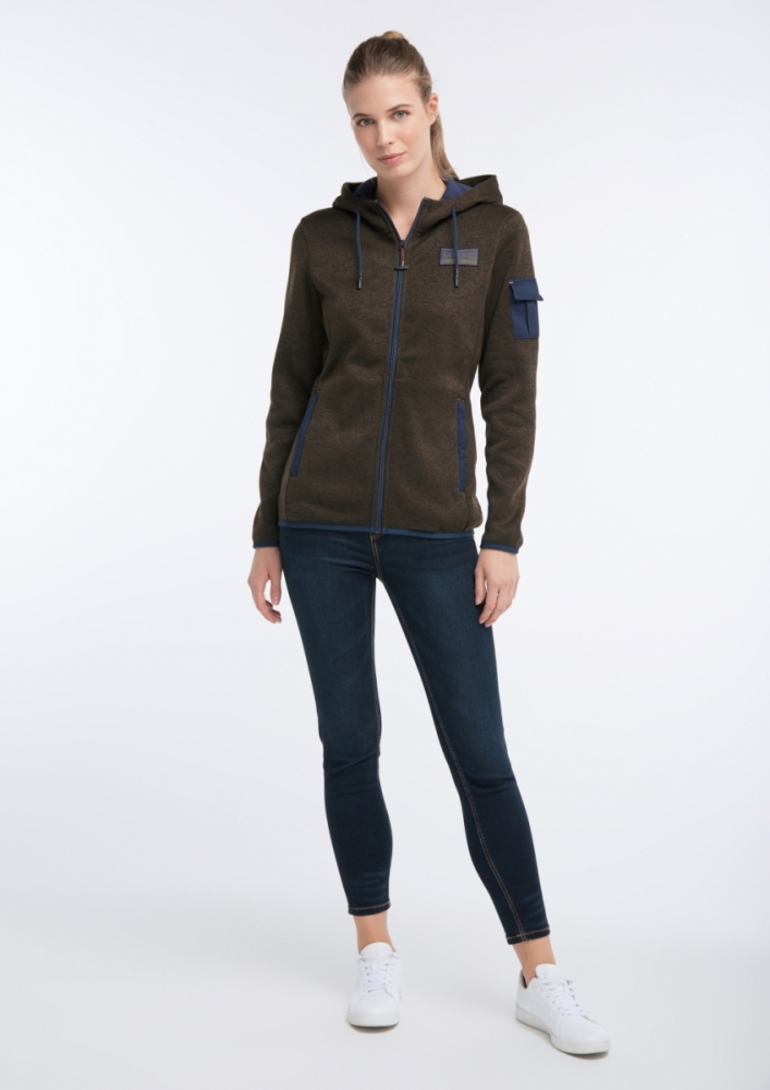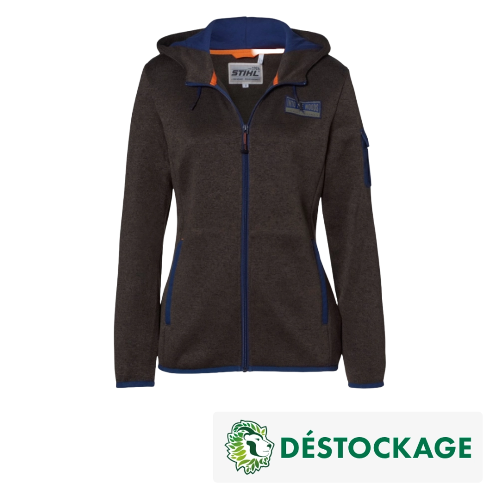 La veste pour femme STIHL "WOOD" est composée à 100 % de polyester. Elle est marron, dans un tissu duveteux, la zone des épaules et les poches sont dans une matière contrastée bleue 65% polyester, 35% coton, avec un intérieur rugueux et un col montant, avec deux poches latérales avec fermeture éclair ; une fermeture éclair avec un " STIHL "ElastoStart" et un badge "INTO THE WOODS".