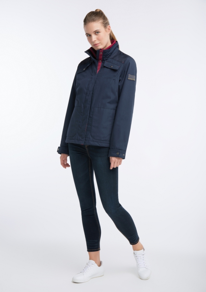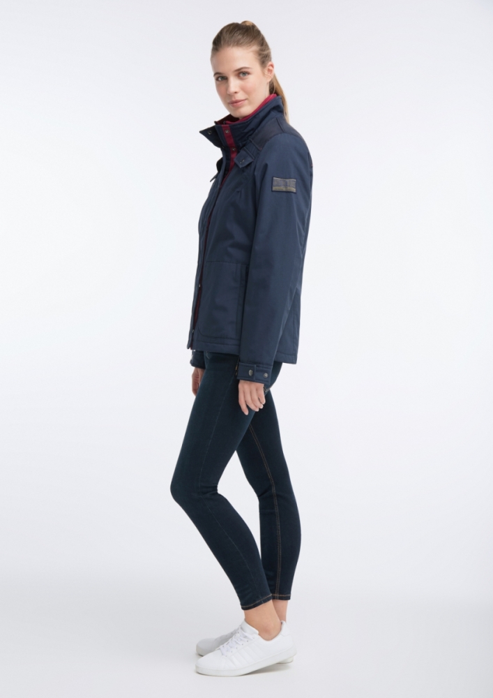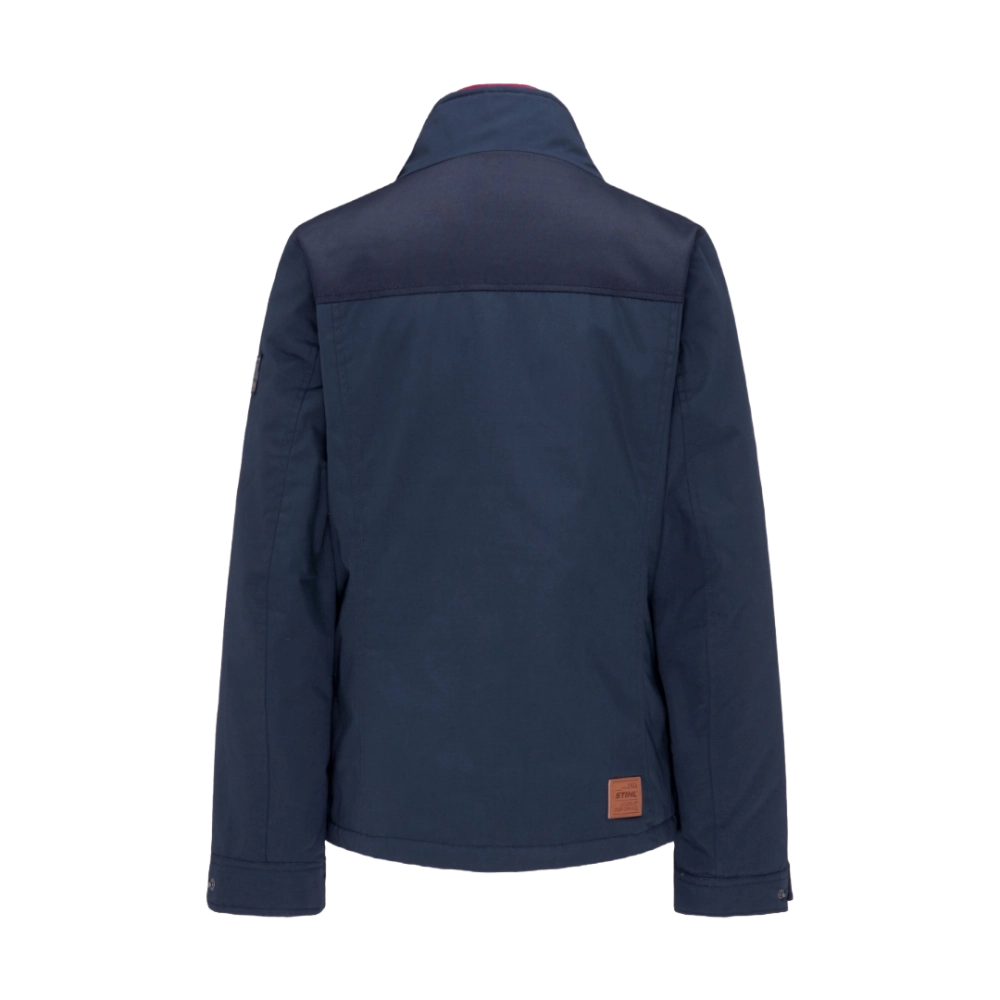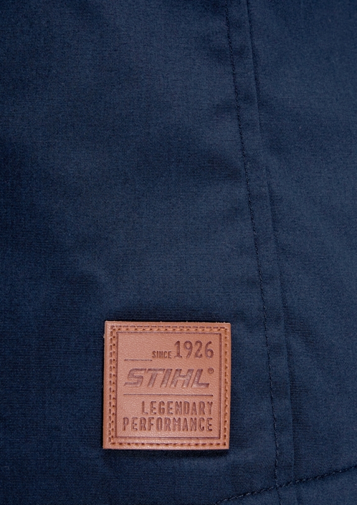 Veste STIHL d'extérieur fonctionnelle et déperlante avec col montant et col intérieur, épaule séparée en bleu foncé, poches poitrine discrètes et fermeture éclair avec bouton-pression recouvert pour vous garder au chaud. Le col montant bordeaux et la doublure intérieure camouflage colorée ajoutent un certain peps ! Bref, un combo réussi !