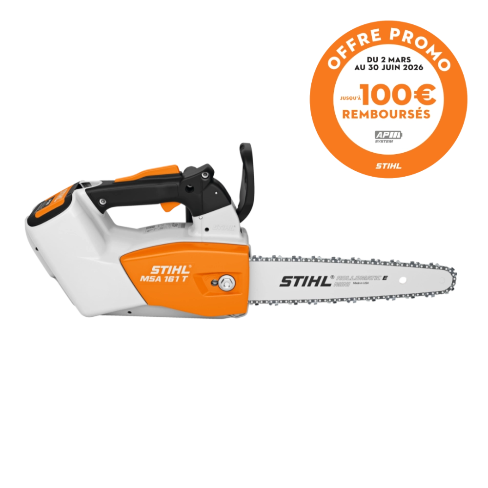 Cette tronçonneuse légère à poignée supérieure est très appréciée des arboriculteurs en raison de son poids de seulement 2,5 kg (sans batterie) et de sa puissance moteur. Grâce à la vitesse de chaîne élevée de 16 m/s, à la puissante accélération et à la chaîne de tronçonneuse STIHL 1/4'' PM3, vous pouvez effectuer des coupes fines et extrêmement précises. Autre avantage de la tronçonneuse sans fil STIHL MSA 161 T : vous pouvez également utiliser cette tronçonneuse sans fil dans les zones sensibles au bruit telles que les zones résidentielles et autour des écoles ou des hôpitaux . La communication entre l'élagueur et les aides au sol est également simplifiée, puisqu'il n'est pas nécessaire de porter de protection auditive.