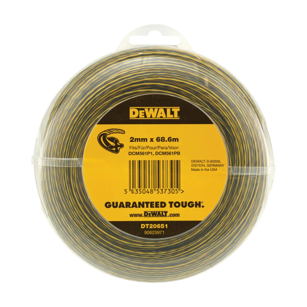 Fil jaune et noir 2,0 mm (15,2 m ou 68,6 m) pour tête standard compatible avec les débroussailleuses et coupe-bordures DEWALT. Pièce d'origine DEWALT assurant une compatibilité parfaite et une durabilité exceptionnelle.
