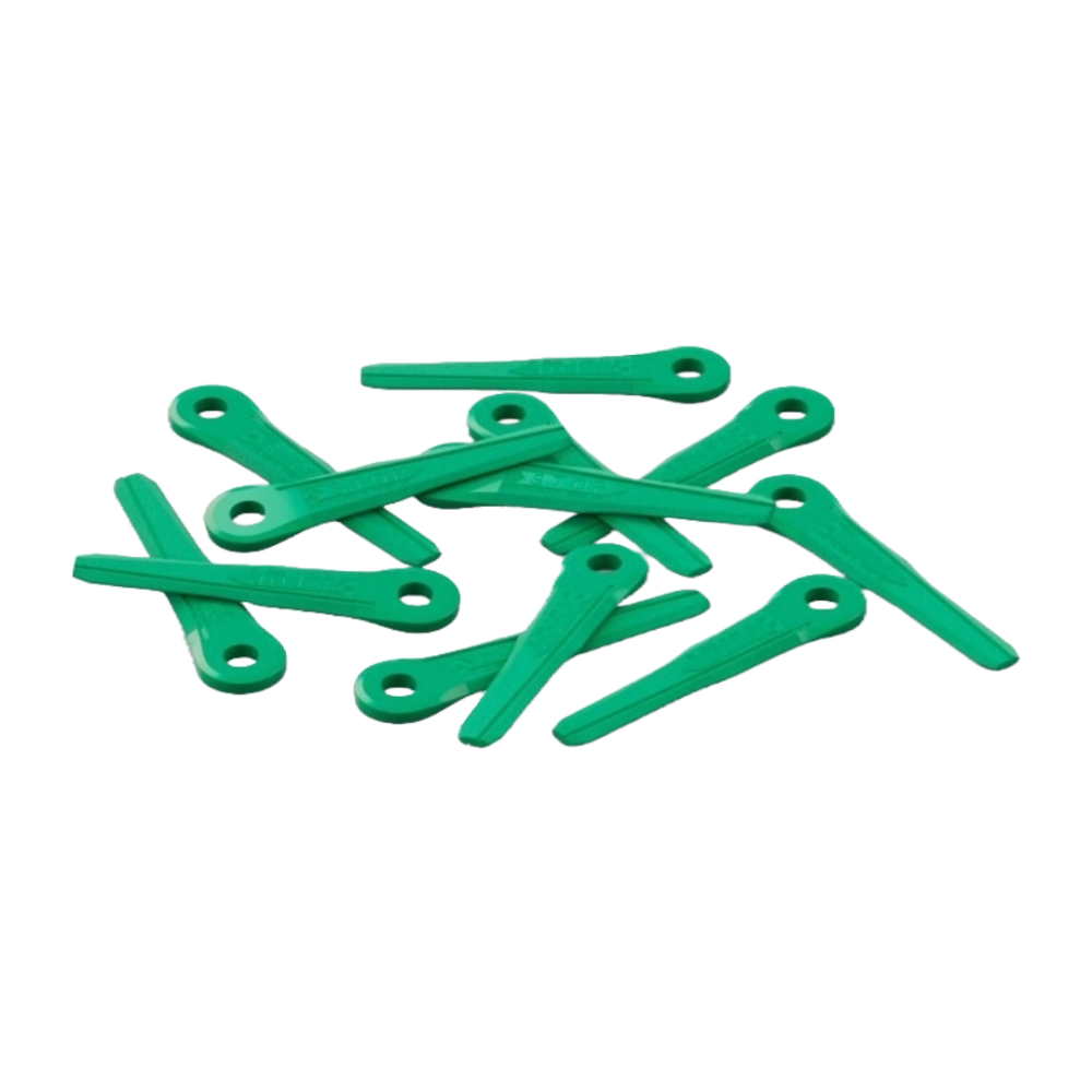 Cet ensemble de couteaux en plastique vert pour la tête de coupe STIHL PolyCut 6-2, STIHL PolyCut 18-2, STIHL PolyCut 12-2 se compose de 12 lames de coupe de haute qualité. Si vous utilisez souvent votre débroussailleuse pour couper de l'herbe dure ou entretenir les bordures de pelouse, cet ensemble de lames en plastique vous aidera à travailler efficacement. Vous pouvez changer les lames de rechange particulièrement rapidement, facilement et sans outils.