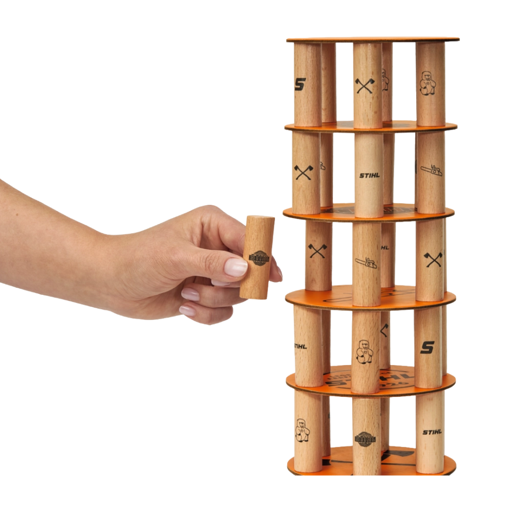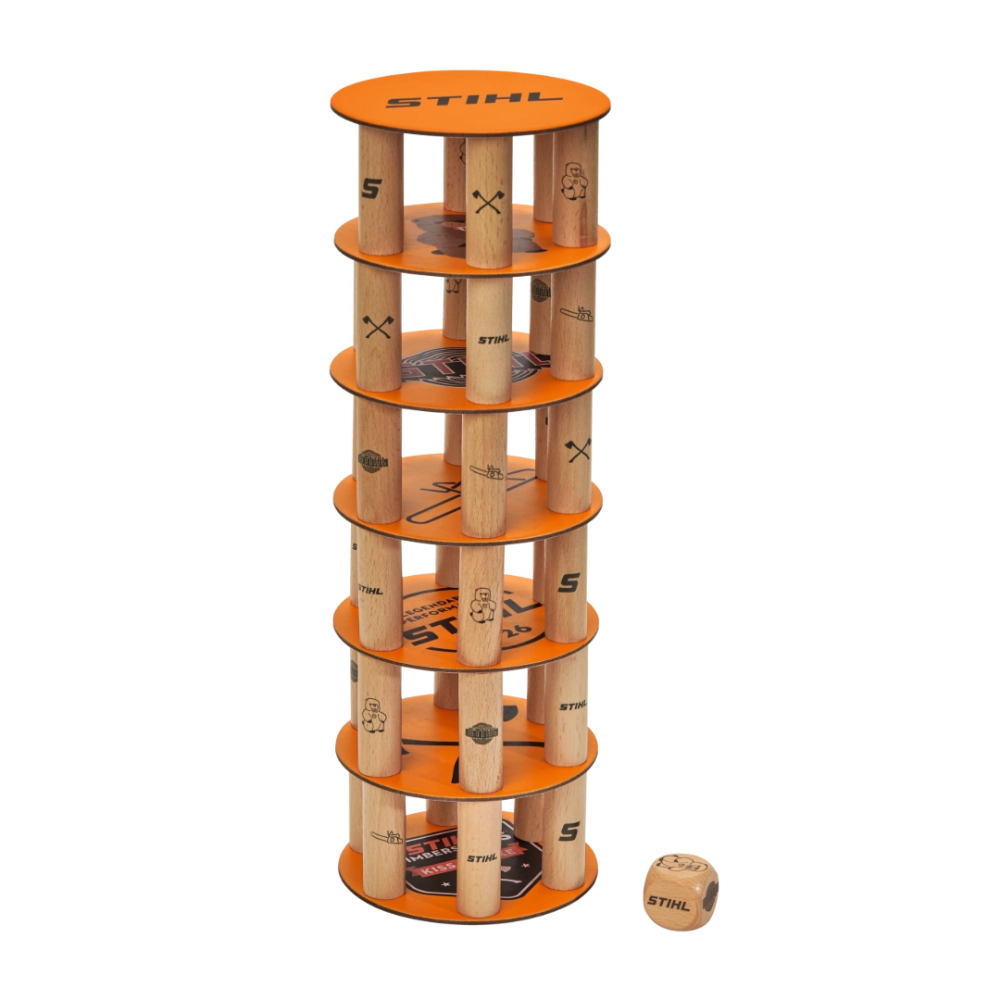 Mettez votre patience et votre précision à rude épreuve avec la tour à empiler STIHL WOOD, une variante ludique et conviviale du grand classique des jeux d’équilibre à la sauce STIHL. Le défi est simple mais captivant : retirez les blocs stratégiquement sans faire s'écrouler l'édifice, sous peine de perdre la partie ! Ce coffret complet comprend 36 blocs en bois gravés, 6 plaques imprimées et 1 dé spécifique qui dicte vos mouvements, ajoutant une dose de suspense à chaque tour. Pratique et nomade, l'ensemble se range en un clin d'œil dans son sac en coton imprimé pour vous suivre partout. C'est l'idée cadeau originale par excellence, parfaite pour réunir petits et grands autour d'un moment de partage authentique.
