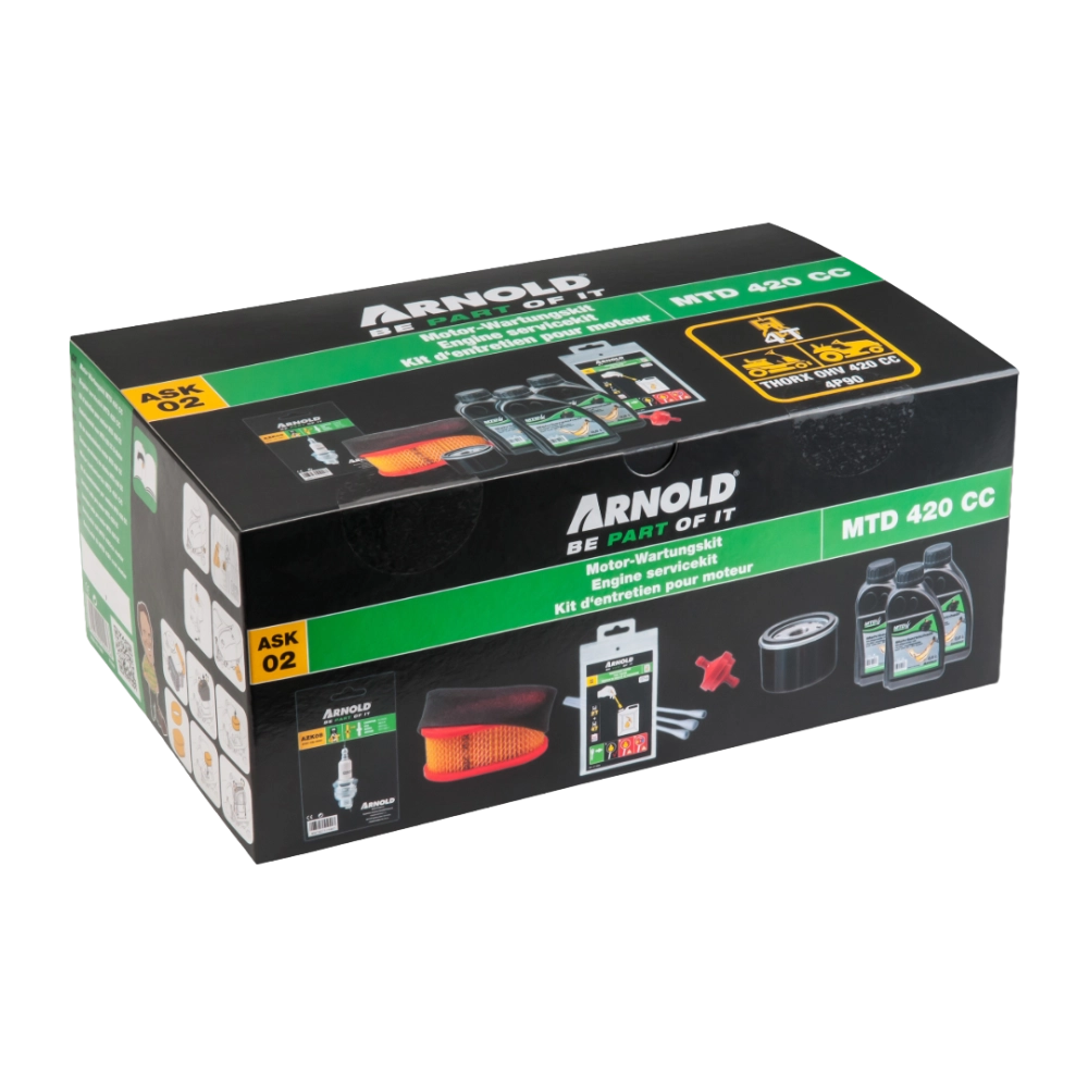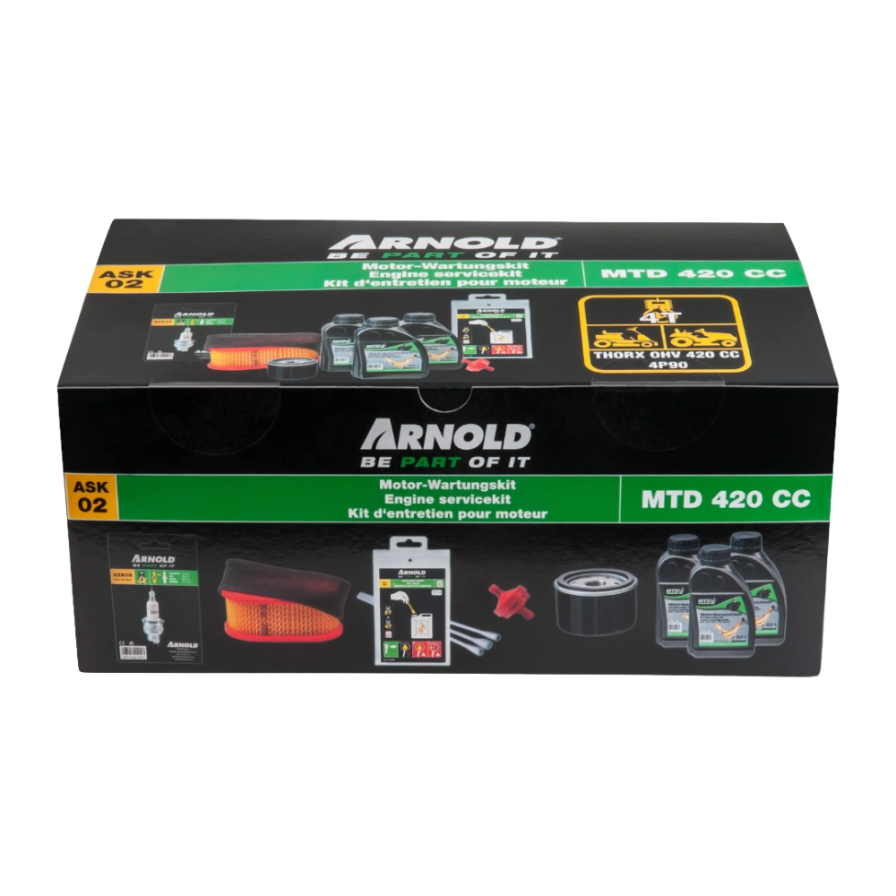 Le kit d’entretien ARNOLD ASK 02 (réf. 9100‑X2‑1006) vous permet de maintenir facilement votre moteur MTD THORX 420 cm³ (4P90), en réunissant toutes les pièces d’origine nécessaires. Grâce à ce kit complet ARNOLD / MTD, l’entretien régulier de votre tondeuses autoportées devient simple et fiable. Idéal pour assurer la longévité et le bon fonctionnement de votre moteur.