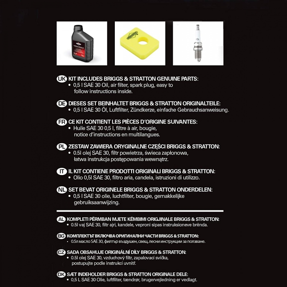 Ce kit révision est constitué de pièces d'origine Briggs et Stratton pour réaliser soi-même l'entretien de son moteur 450E Series, 500E Series. Entretien à faire à chaque fin de saison ou toutes les 25 heures d'utilisation.