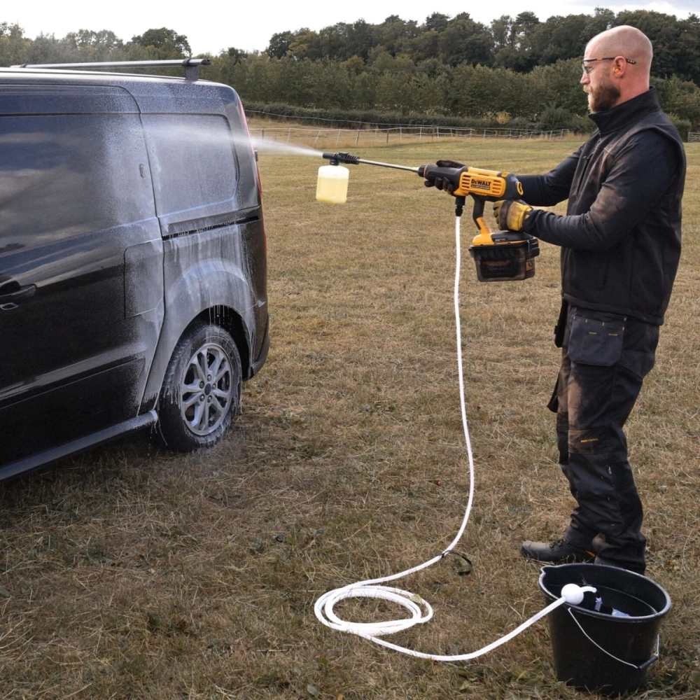 Côté conception, DEWALT mise sur la durabilité et la protection. Le bloc moteur bénéficie d’un indice IPX5, tandis que le compartiment batterie est renforcé en IPX7 pour résister à la projection et à l’immersion accidentelle. La lance métallique et la gâchette sécurisée à deux étapes assurent précision et confort d’utilisation. Porté avec un harnais pour mieux répartir le poids (environ 4,4 kg avec une batterie 12 Ah), le DCMPW1000 peut atteindre jusqu’à 60 minutes d’autonomie en mode ECO. Résultat : un nettoyeur compact, robuste et réellement nomade, idéal pour l’entretien de matériel, véhicules, terrasses ou chantiers isolés.