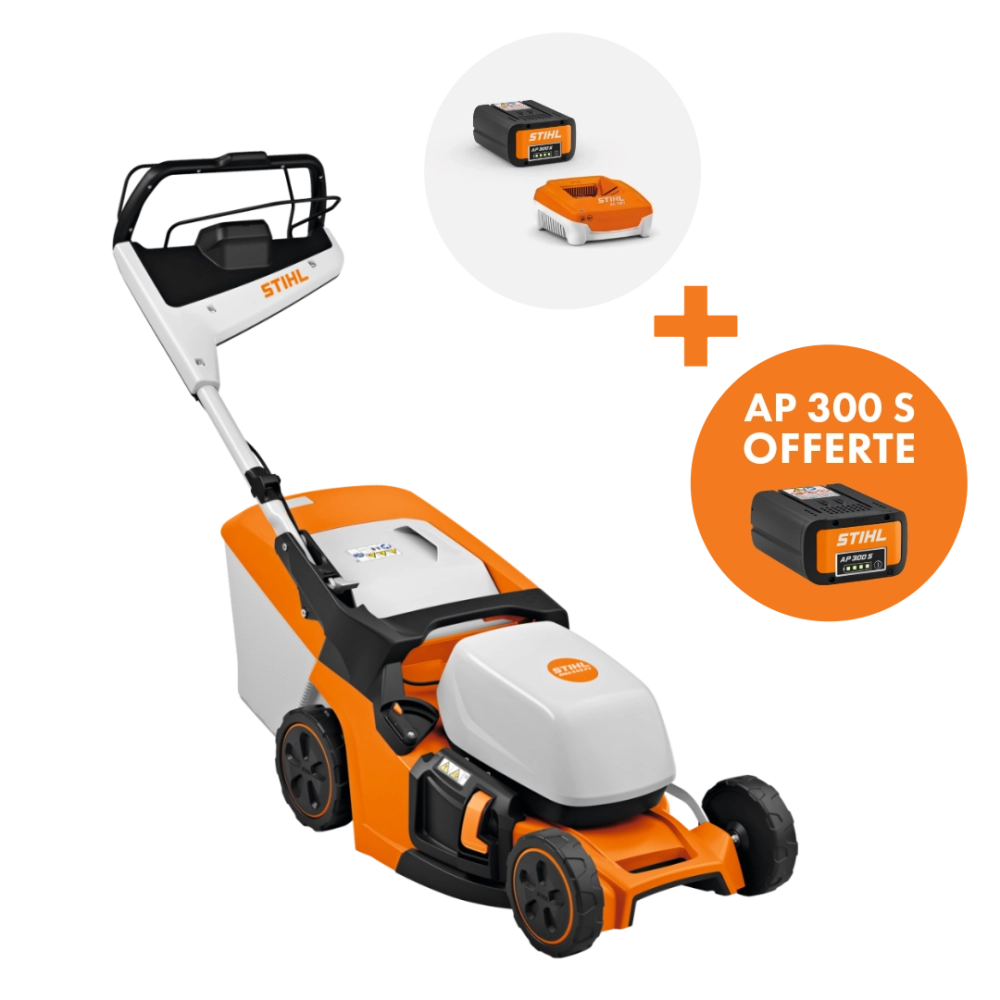 OFFRE KING VERT : 1 batterie AP 300 S offerte pour l'achat de ce pack tondeuse, chargeur AL 301 et batterie AP 300 S. Voir conditions complètes de l'offre sur la page Offres Promotionnelles.