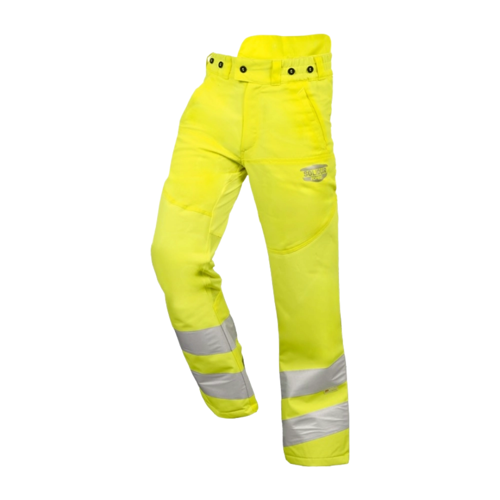 Le pantalon de débroussaillage SOLIDUR HV jaune est un équipement de protection individuelle conçu pour les professionnels des espaces verts, de l'agriculture et des travaux en bord de route. Sa couleur jaune haute visibilité, conforme à la classe 2 de visibilité, assure une sécurité optimale lors d'interventions dans des environnements à risque. Ce pantalon est spécifiquement conçu pour offrir une protection contre les impacts légers, tels que les projections de débris lors de l'utilisation d'une débroussailleuse, mais il ne convient pas pour l'utilisation d'une tronçonneuse.