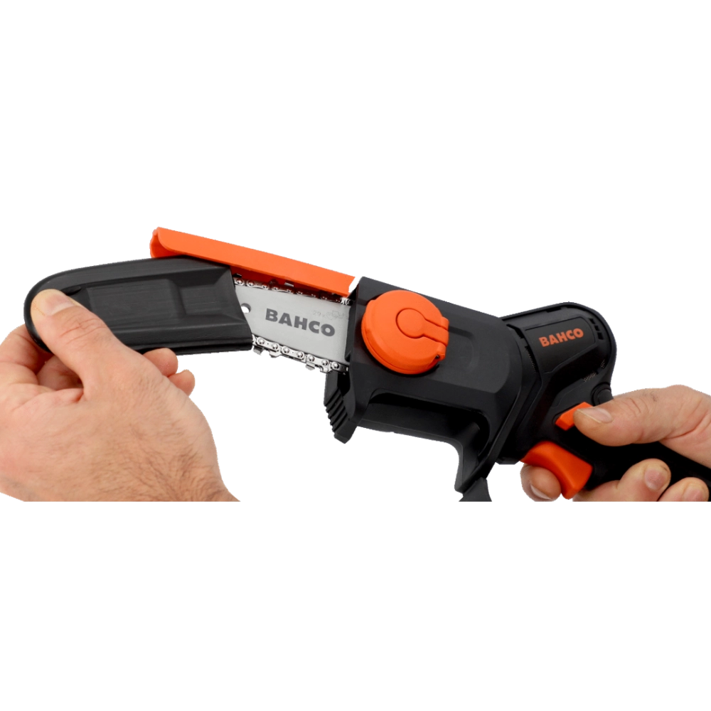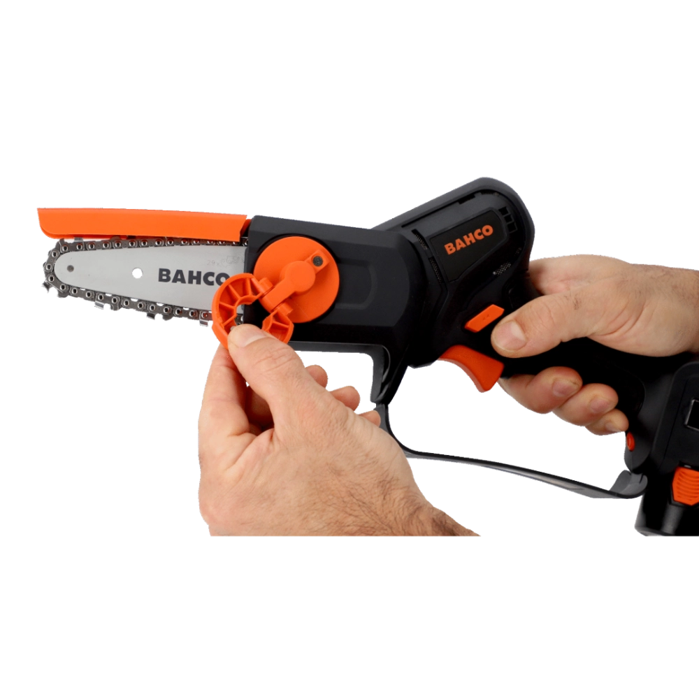 La tronçonneuse compacte à batterie BAHCO BCL104, conçue pour l’élagage léger et le travail en espaces restreints. Équipée d’un moteur brushless de 300 W, elle offre puissance et efficacité tout en réduisant l’usure et l’entretien. Sa chaîne ¼" de 29 maillons permet une coupe précise jusqu’à 90 mm, idéale pour la taille de branches fruitières, le jardinage ou la viticulture.