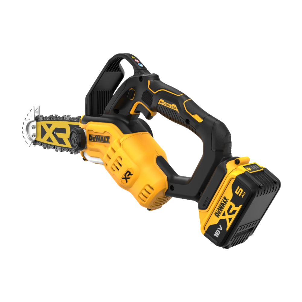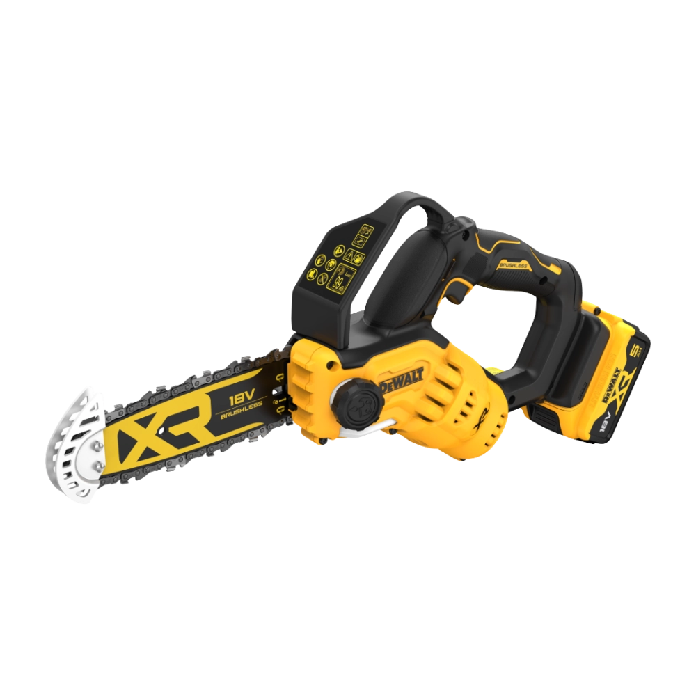 La scie de jardin à batterie DEWALT DCMPS520 est une tronçonneuse d'élagage compacte conçue pour offrir puissance, précision et fiabilité. Grâce à son moteur BRUSHLESS 18V XR, elle fournit un rendement élevé tout en garantissant une excellente autonomie, offrant des performances comparables à une petite machine thermique tout en restant silencieuse et sans émissions.