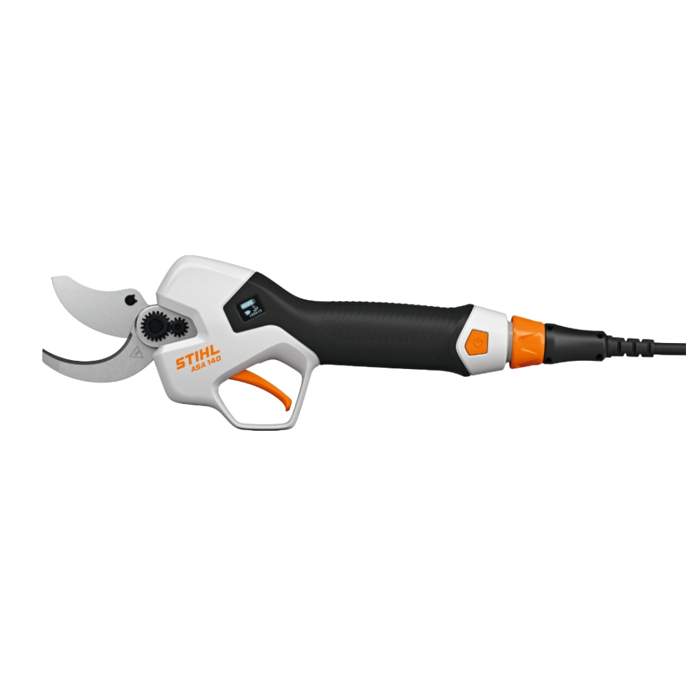 Équipé d’un moteur EC sans balais, l’ASA 140 assure une puissance constante, un excellent rendement et une grande longévité. Il fonctionne avec une batteries AP déportée à la ceinture, reliée par un câble flexible, ce qui supprime le poids de la batterie dans la main et améliore considérablement la maniabilité. Avec un poids contenu de 1 070 g et une autonomie pouvant atteindre jusqu’à 9 000 coupes avec une AP 300 S, ce sécateur combine légèreté, puissance et endurance.