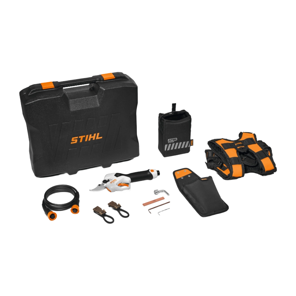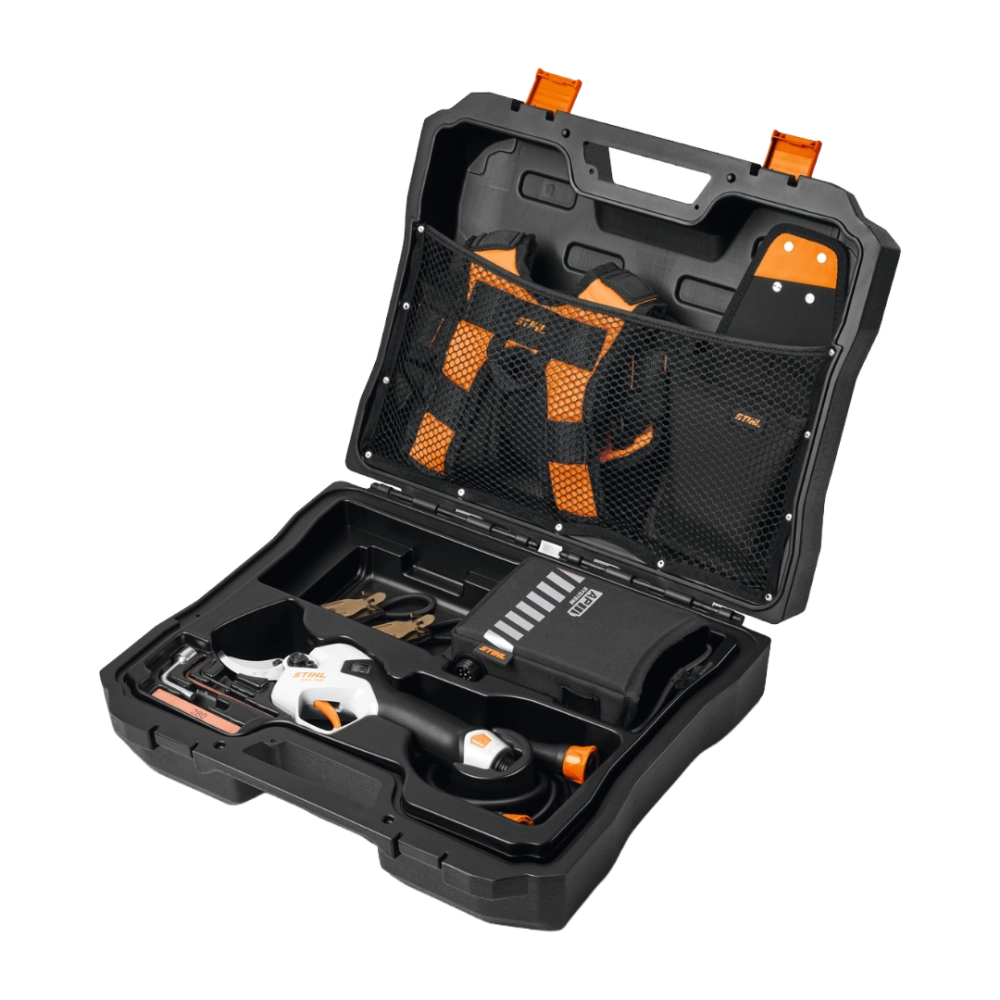 Pensé pour un usage intensif, le STIHL ASA 140 réduit la fatigue et les risques de TMS grâce à son ergonomie professionnelle et à sa poignée bien équilibrée. L’écran OLED intégré permet de consulter en un coup d’œil le niveau de charge, l’ouverture de la lame, le nombre de coupes et les alertes de maintenance. Livré avec une mallette de transport et compatible avec le système de portage ADVANCE X-Flex, il s’impose comme un outil fiable et productif pour les vergers, vignobles et grands chantiers arboricoles.