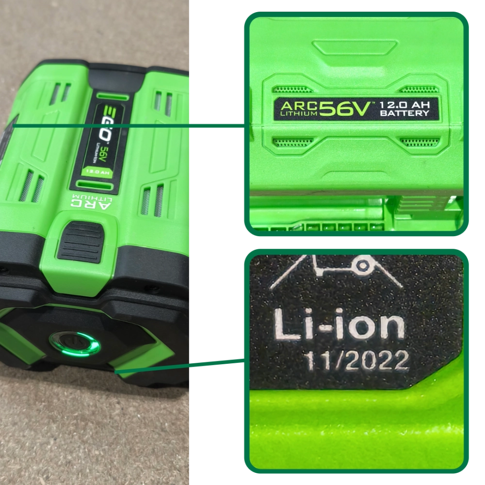 La batterie lithium-ion BA6720T EGO Power+ 56 V offre 672 Wh et 12,0 Ah pour des performances équivalentes à celles de l’essence, grâce à sa conception ARC unique qui maximise le refroidissement et l’efficacité des cellules. Chaque cellule est entourée du matériau Keep Cool™ à changement de phase, assurant une dissipation thermique optimale et une température stable pour un fonctionnement prolongé. Elle est compatible avec les outils de la gamme EGO POWER +.