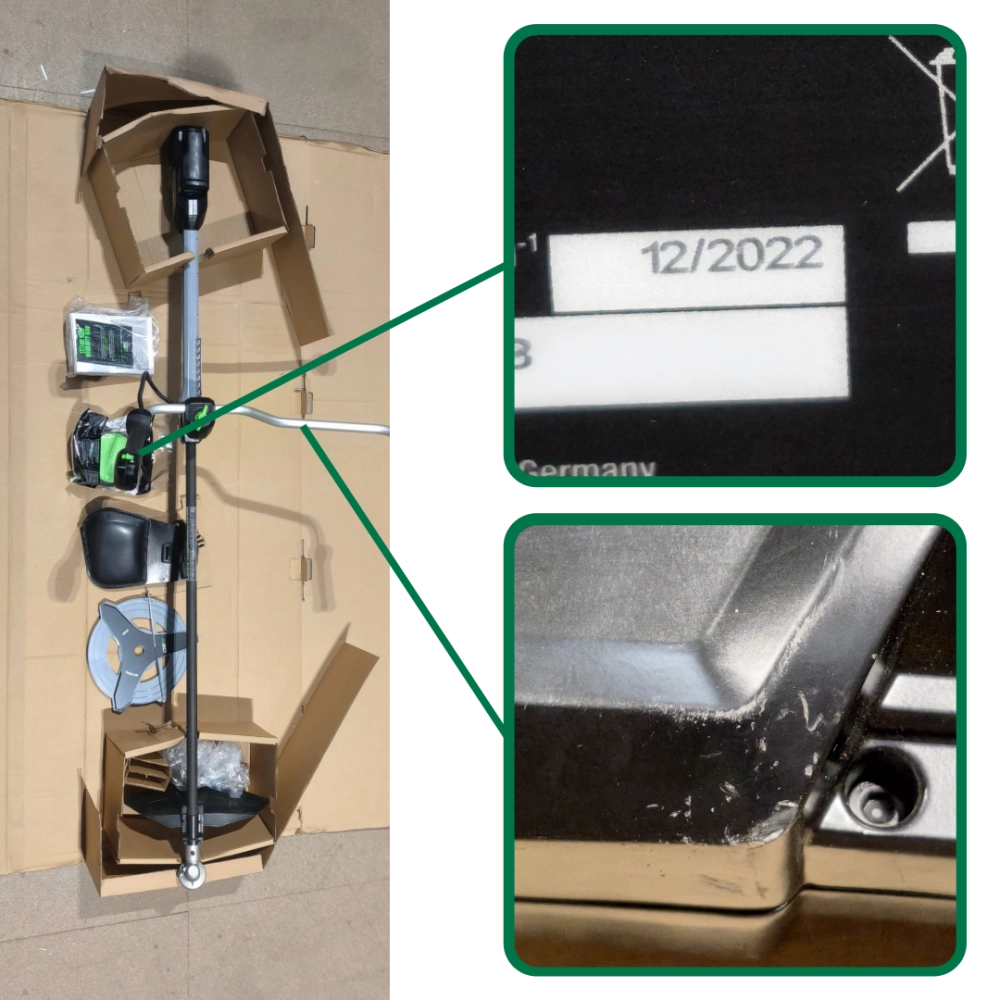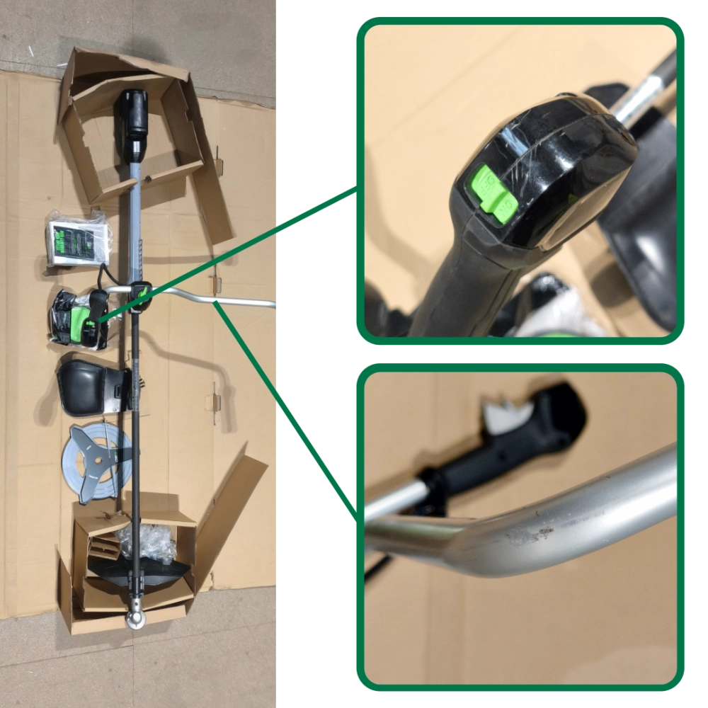 Livrée sans batterie ni chargeur, seulement utilisable avec un harnais dorsal ou une batterie dorsale => Penser à commander un harnais, une batterie et un chargeur avec votre débroussailleuse !