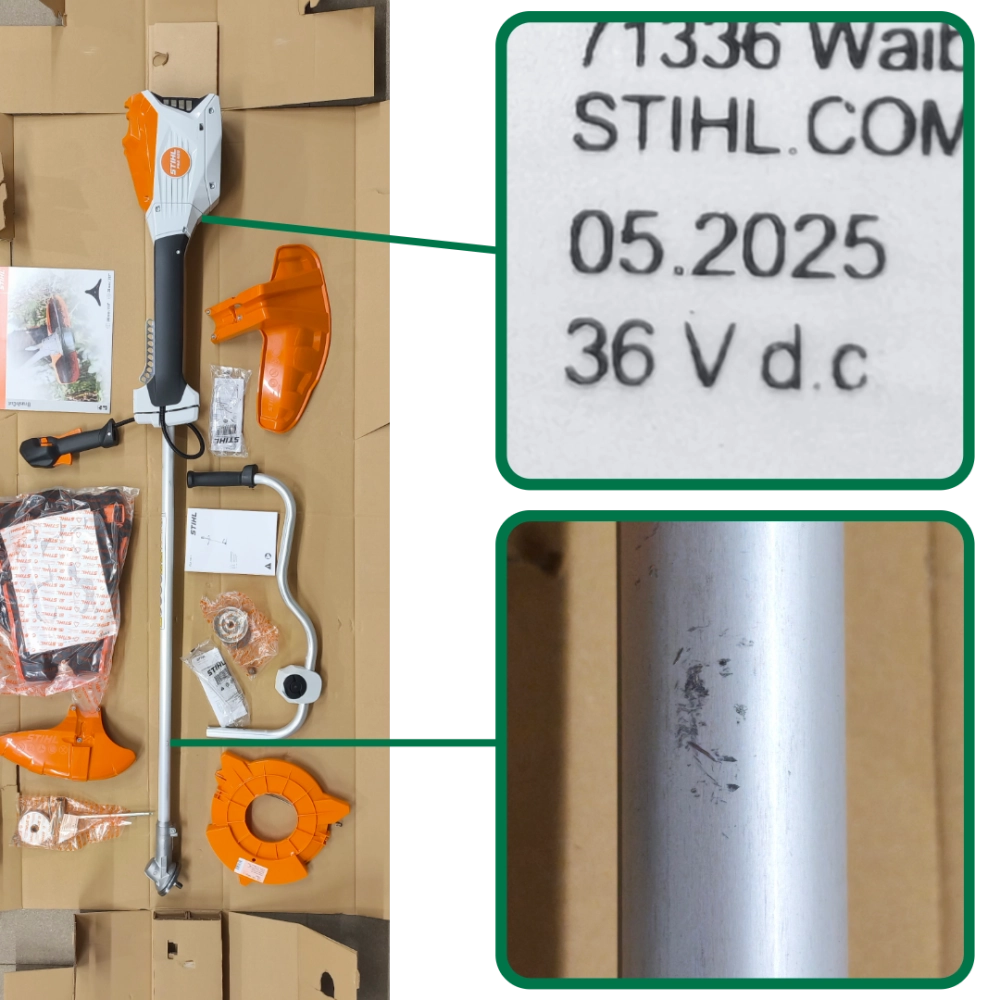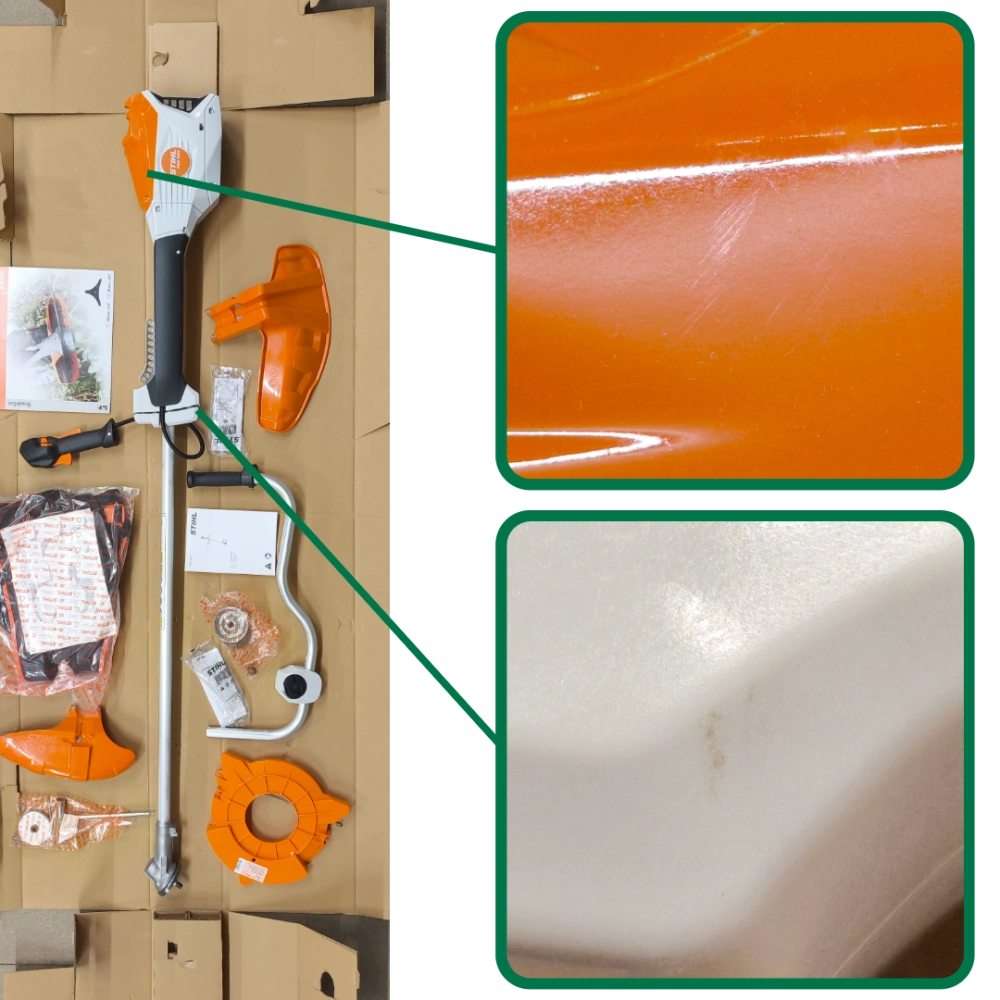 Livrée avec un couteau 3 dents BrushCut 300 mm, un harnais, deux capots, des lunettes et un manuel