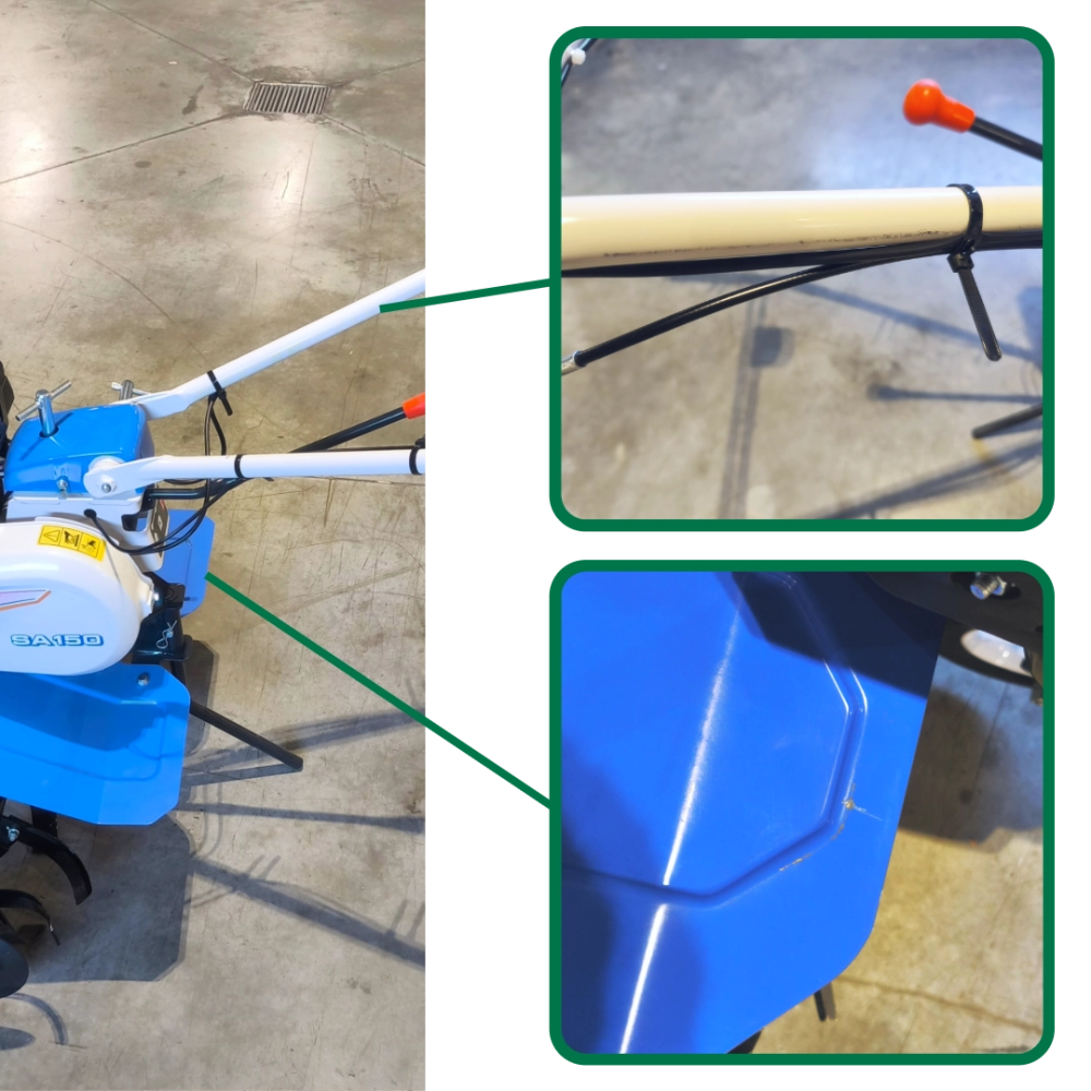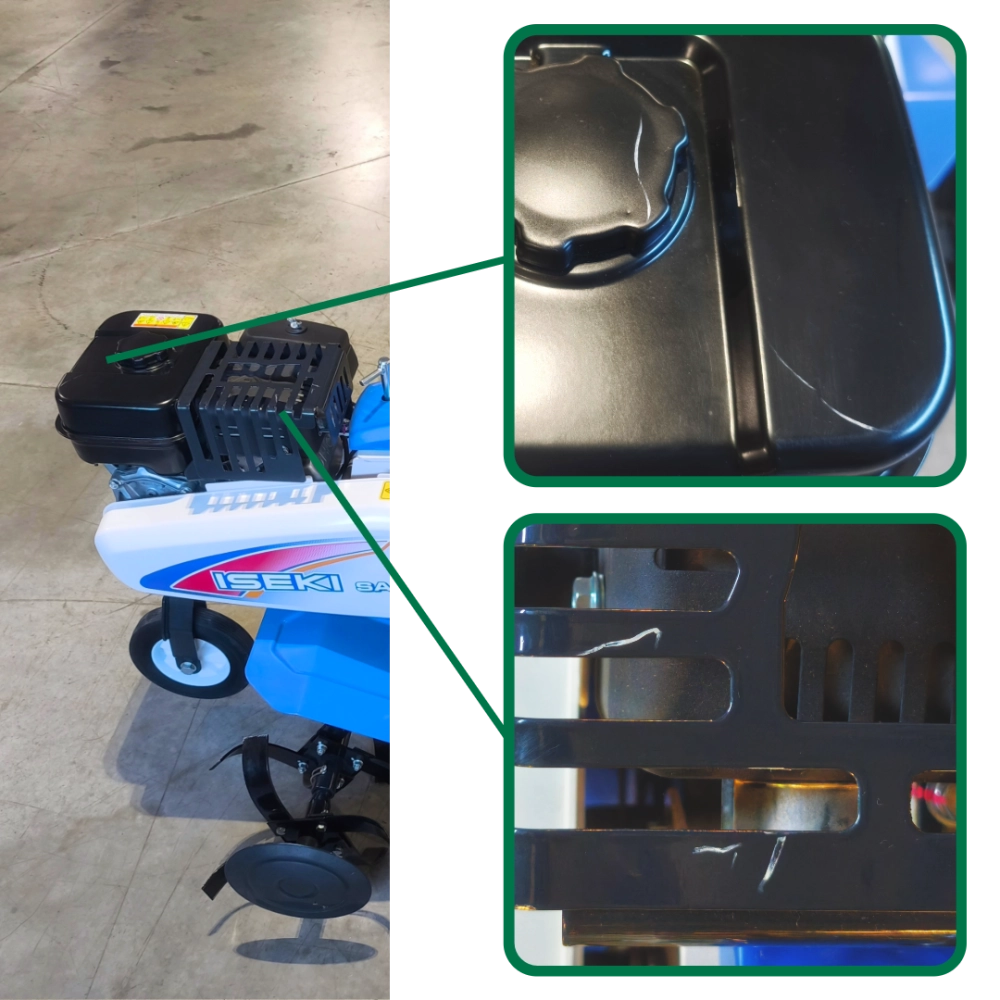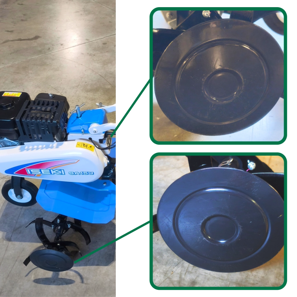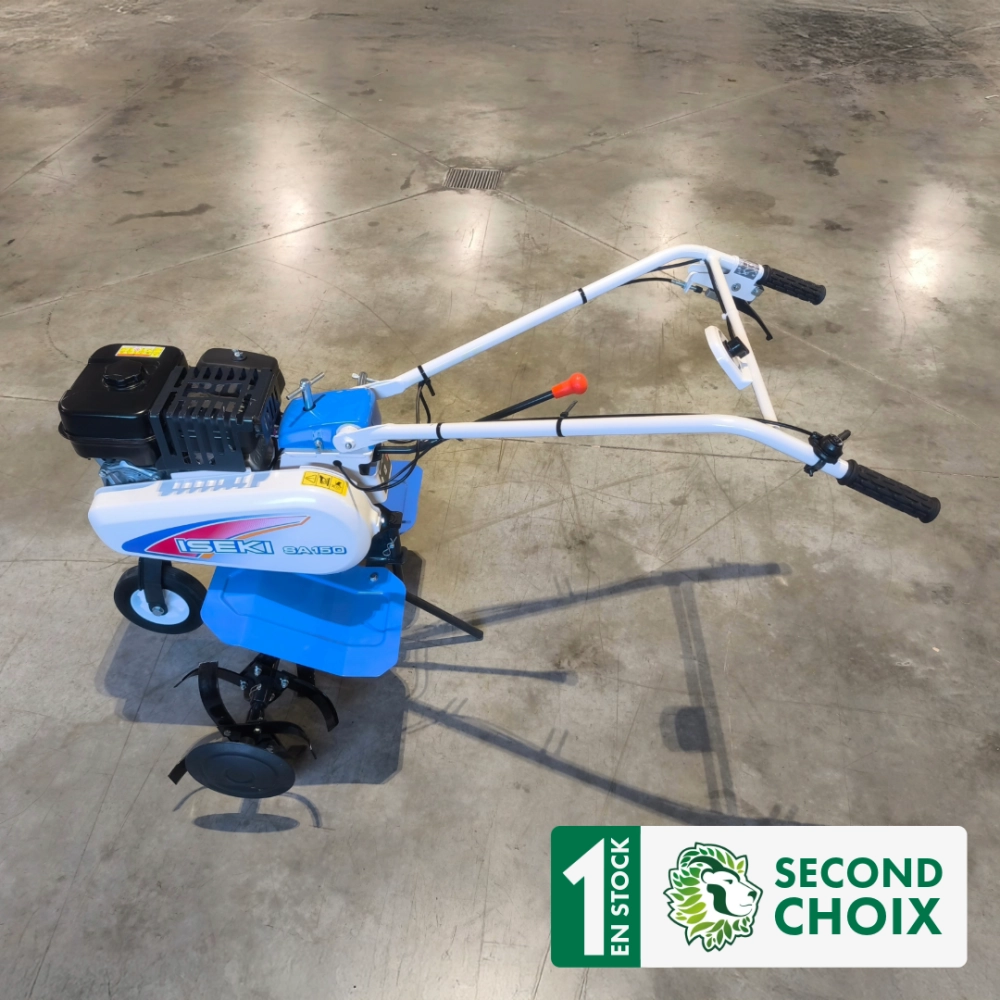 La motobineuse ISEKI SA 150 est un modèle thermique haut de gamme. Elle est équipée d’un moteur SUBARU EX17 OHC de 169 cm³, délivrant jusqu’à 5,7 chevaux à 4 000 tr/min, et offre une largeur de travail modulable entre 56 et 86 cm grâce à ses six fraises robustes. Sa transmission mécanique à une vitesse avant et une arrière, via courroie et chaîne, assure fiabilité et longévité, tandis que son guidon réglable en hauteur et en déport optimise le confort d’utilisation. Avec un poids d’environ 62 kg et un réservoir de 3,6 L, elle combine puissance, stabilité et précision pour un travail du sol efficace, même en terrain difficile.