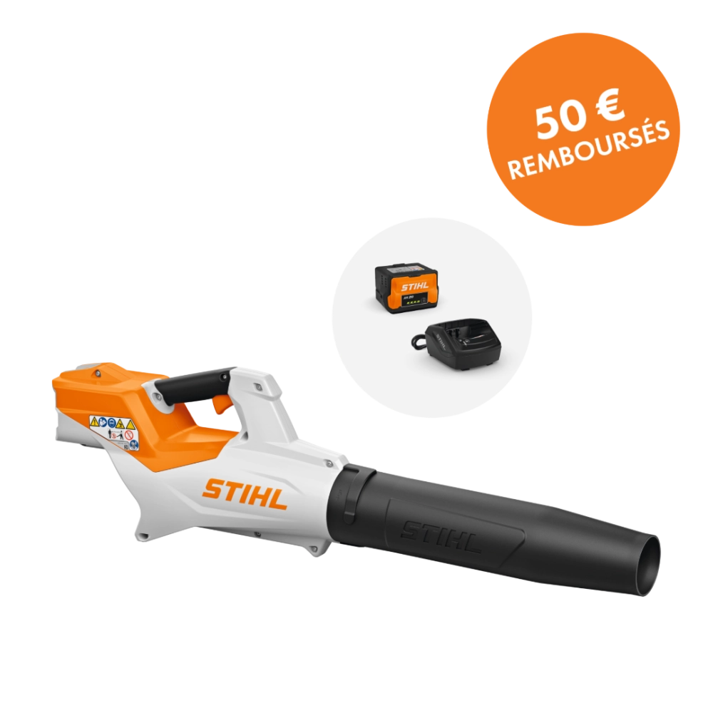 OFFRE DE REMBOURSEMENT STIHL : 50€ remboursés par STIHL pour l’achat de ce pack machine AK (machine, batterie et chargeur). Offre valable du 1er septembre 2025 au 30 novembre 2025 dans la limite des participations restantes. Conditions complètes disponibles sur stihl-promo.fr