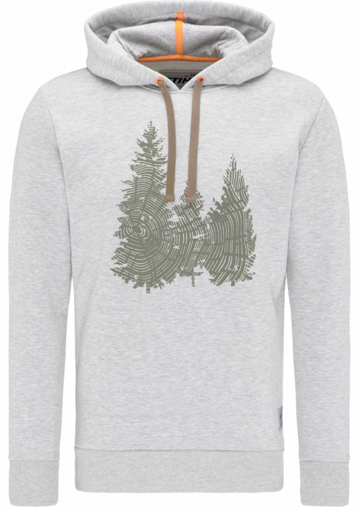 Ce sweat à capuche STIHL "FIR" gris est composé de 45% coton et 55% polyester. Confortable sensation de chaleur grâce à l'intérieur rugueux. Ce sweat devient polyvalent grâce à l'imprimé élégant sur le devant avec un motif sapin «FIR» et des applications subtiles en orange.