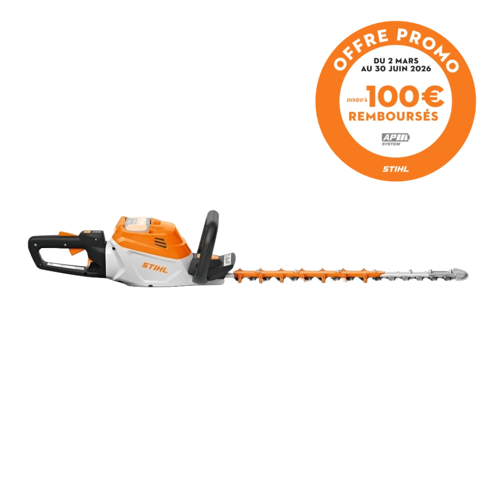 OFFRE DE REMBOURSEMENT STIHL : 50€ remboursés par STIHL pour l’achat de cette machine AP nue. 100€ remboursés par STIHL pour l’achat de cette machine en pack (avec une batterie AP et un chargeur compatible). Offre valable du 2 mars 2026 au 30 juin 2026 dans la limite de participations restantes. Conditions complètes disponibles sur stihl-promo.fr/modalites/ap